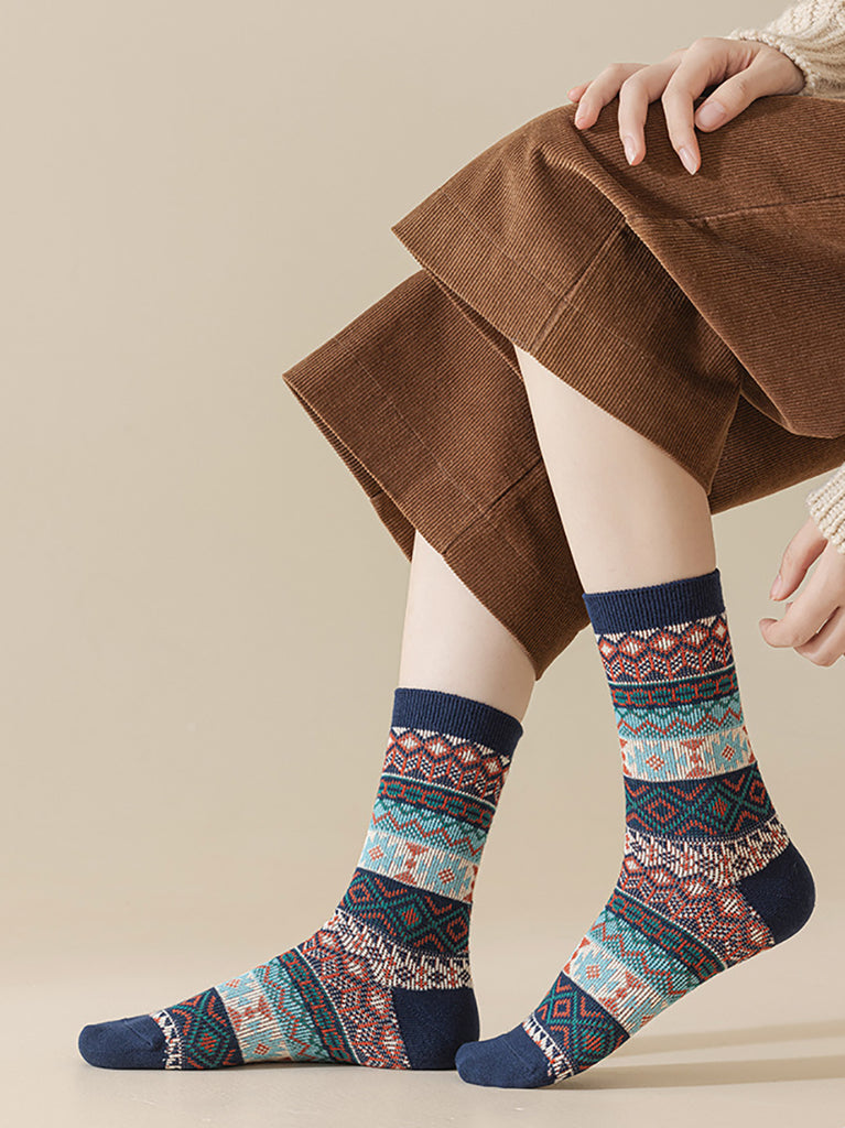 5 Pairs Winter Ethnic Flower Mid Heel Socks