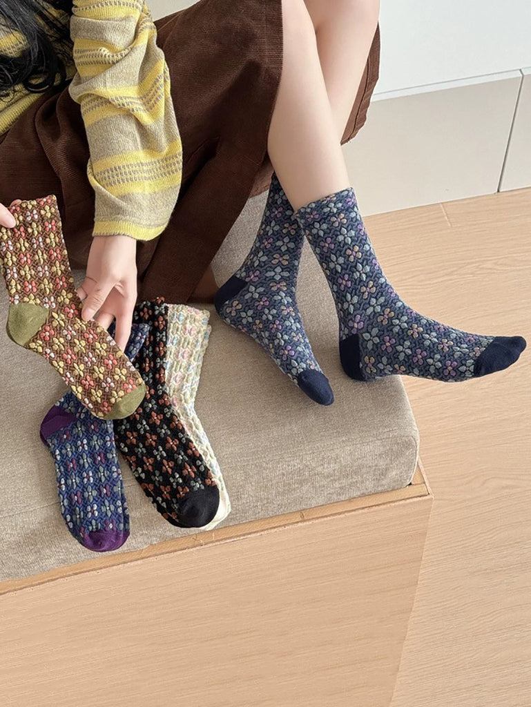 5 Pairs Women Vintage Flower Warm Socks