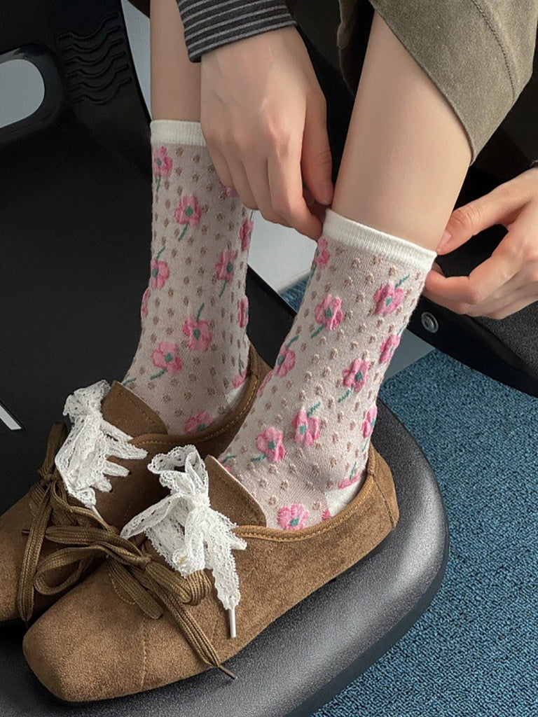 5 Pairs Women Artsy Flower Jacquard Cotton Socks