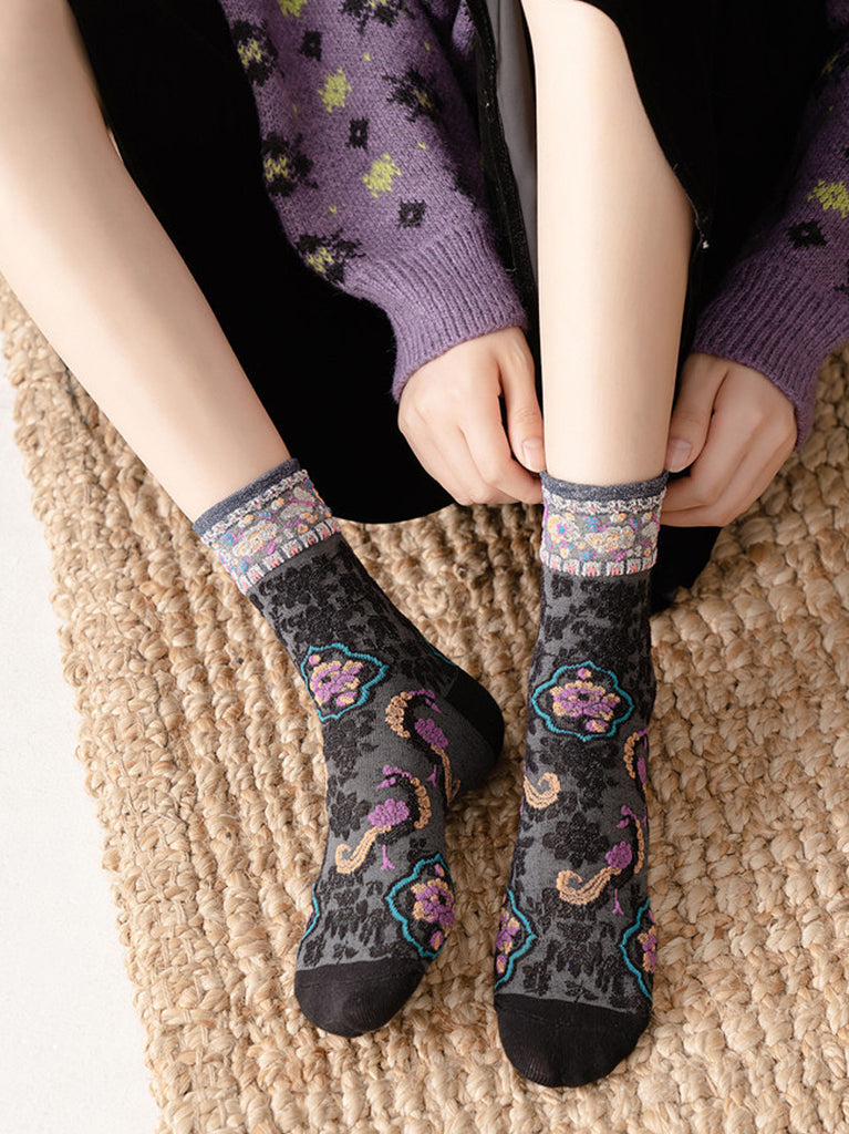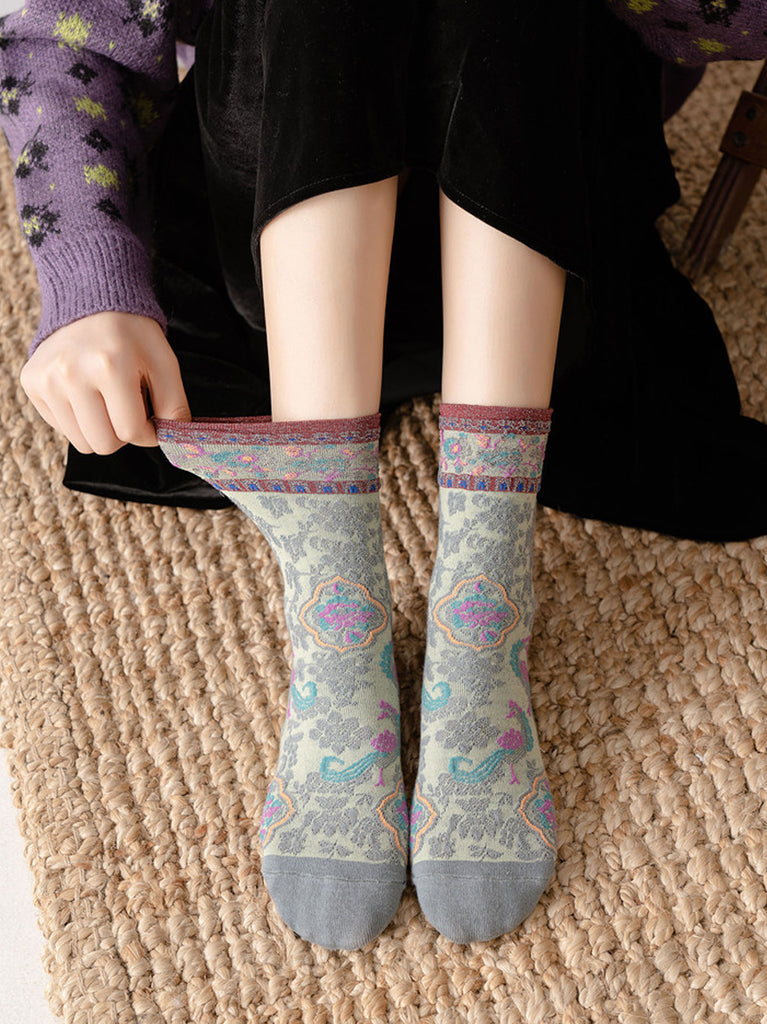 5 Pairs Women Vintage Floral Jacquard Cotton Socks