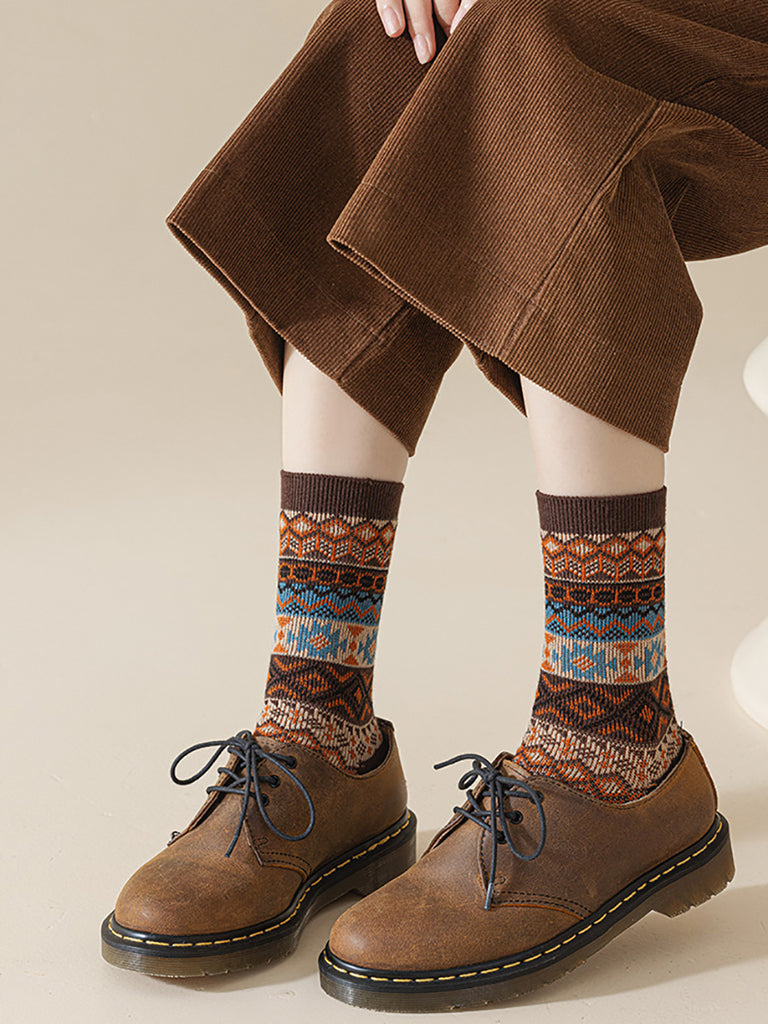5 Pairs Women Vintage Autumn Jacquard Cotton Socks