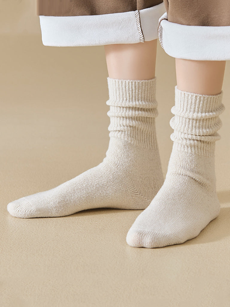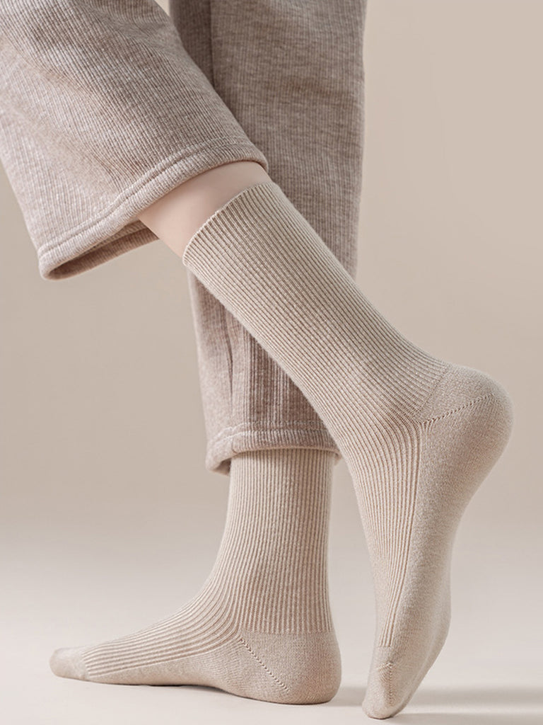 5 Pairs Women Casual Solid Cotton Mid-leg Socks