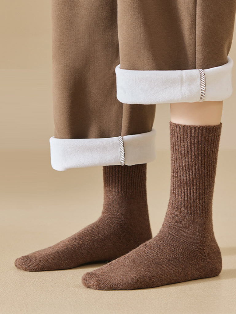 2 Pairs Women Winter Fleece-lined Thick Calf-Length Socks