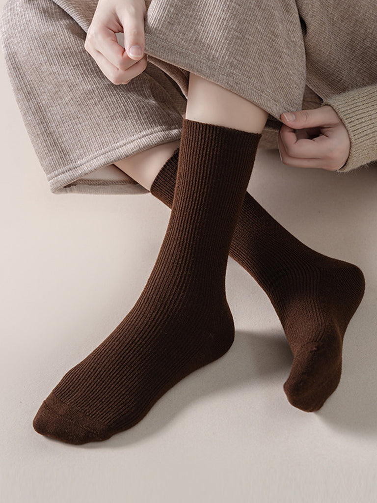 5 Pairs Women Winter Colorblock Mid-heel Socks