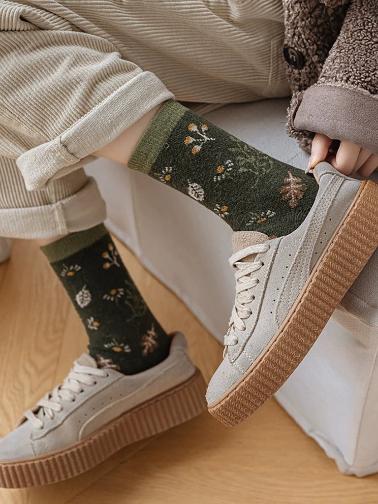 Women Floral Vintage Casual Autumn Winter Socks 5 Pairs