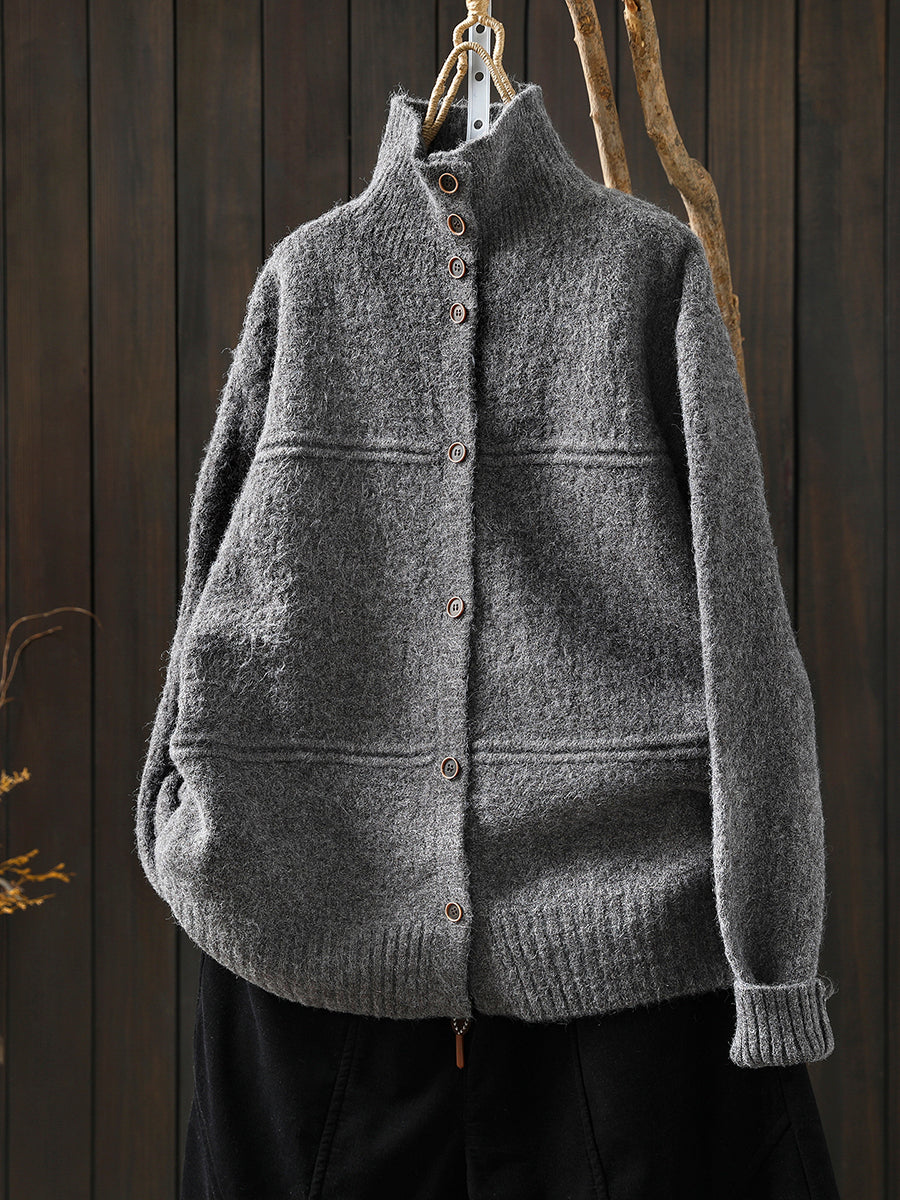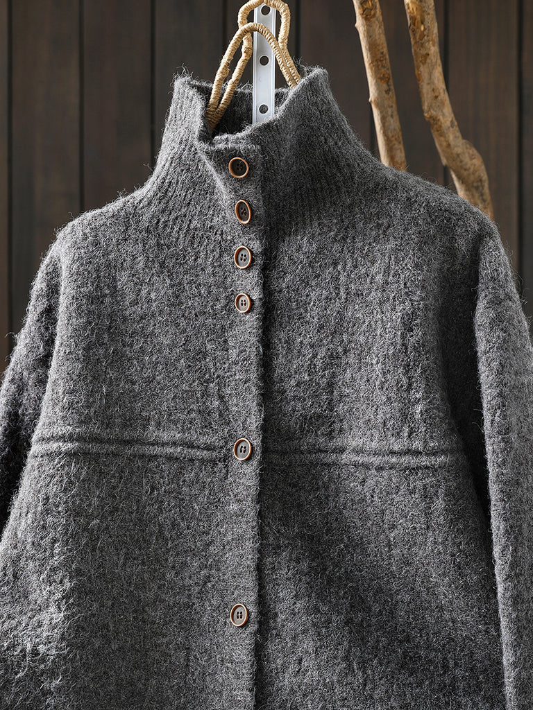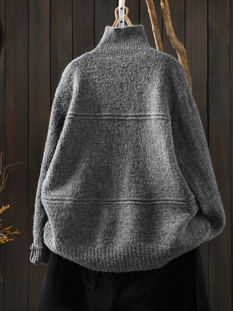 Women Autumn Artsy Pure Color Turtleneck Cardigan Sweater