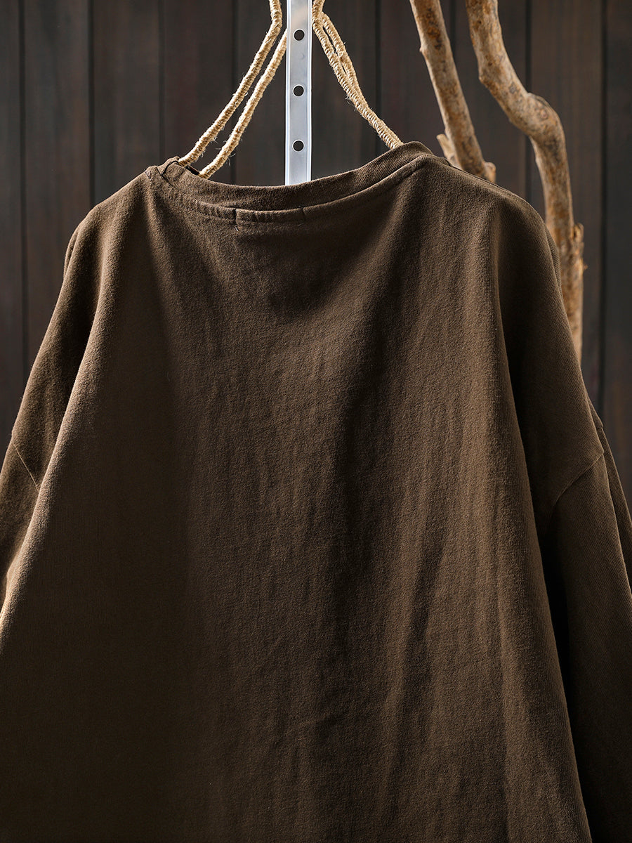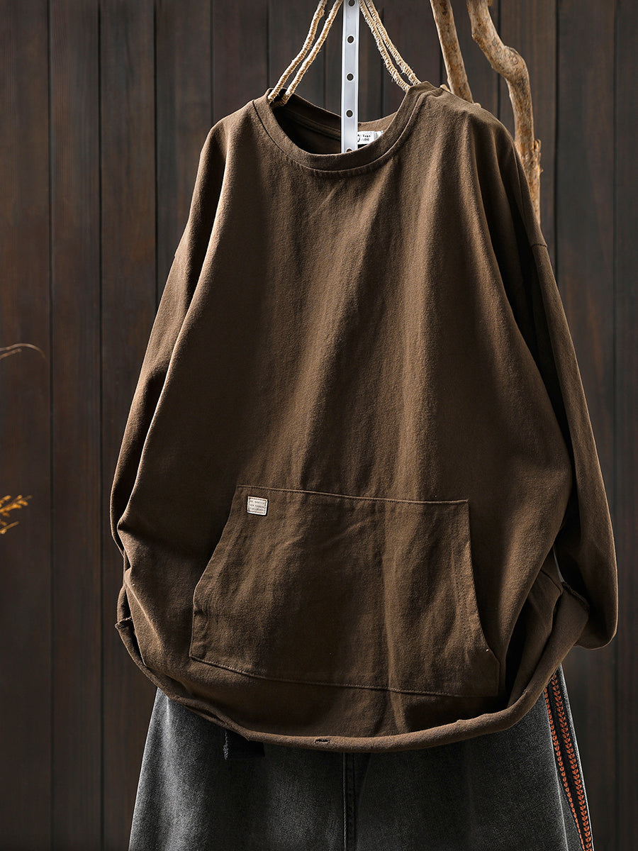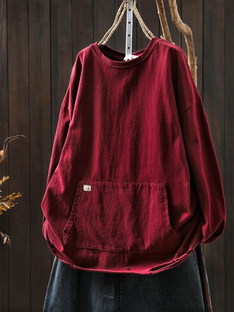 Women Autumn Casual Pure Color O-Neck Blouse