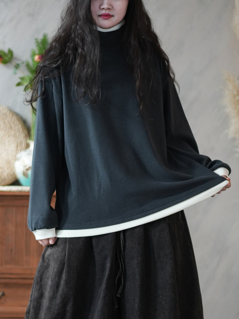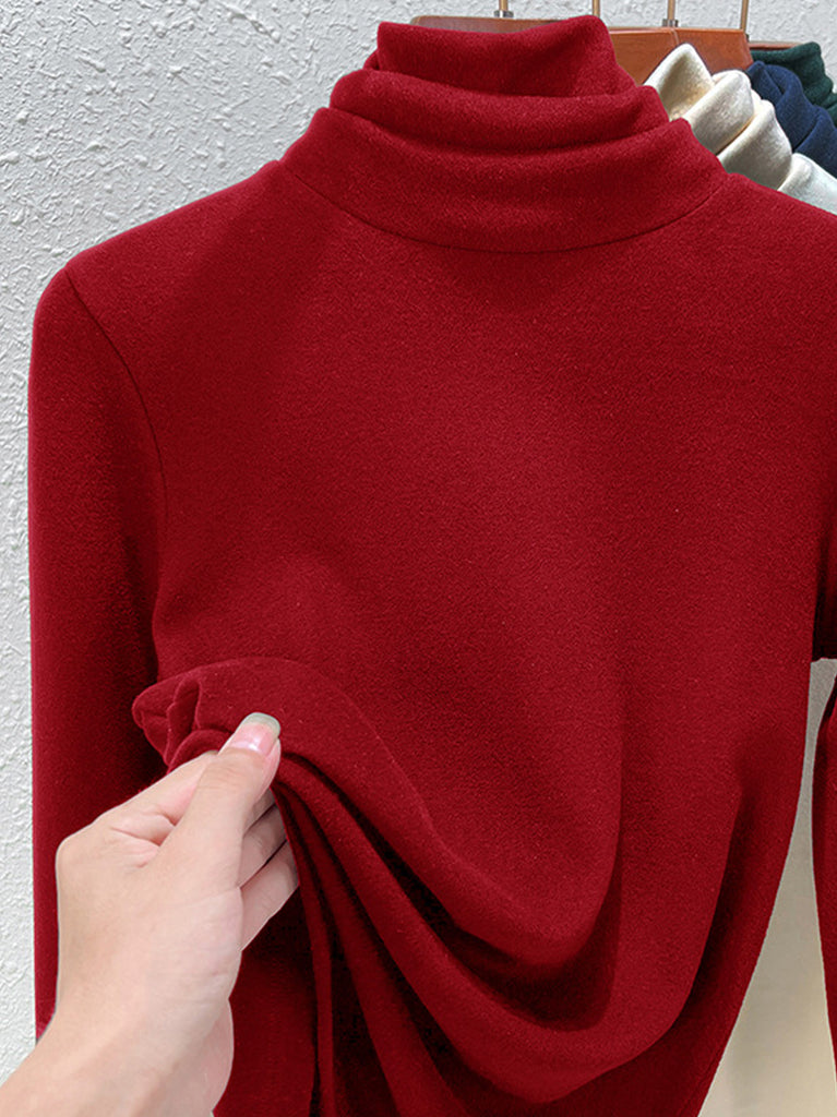 Women Winter Casual Fleece-lined Turtleneck Blouse
