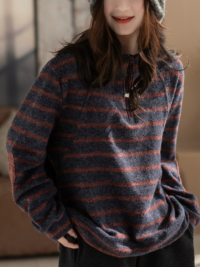 Women Winter Vintage Stripe Half-Turtleneck Blouse