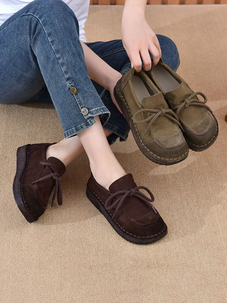 Women Autumn Vintage Leather Spliced Flat Shoes