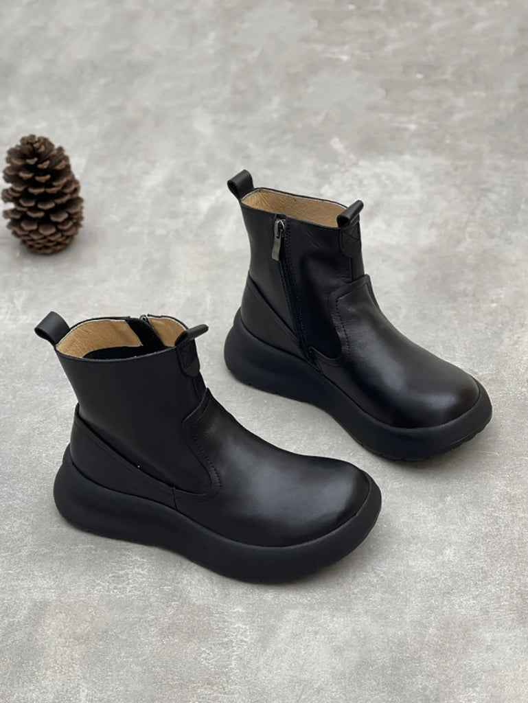 Women Autumn Pure Color Leather Zipper Platfrom Boots