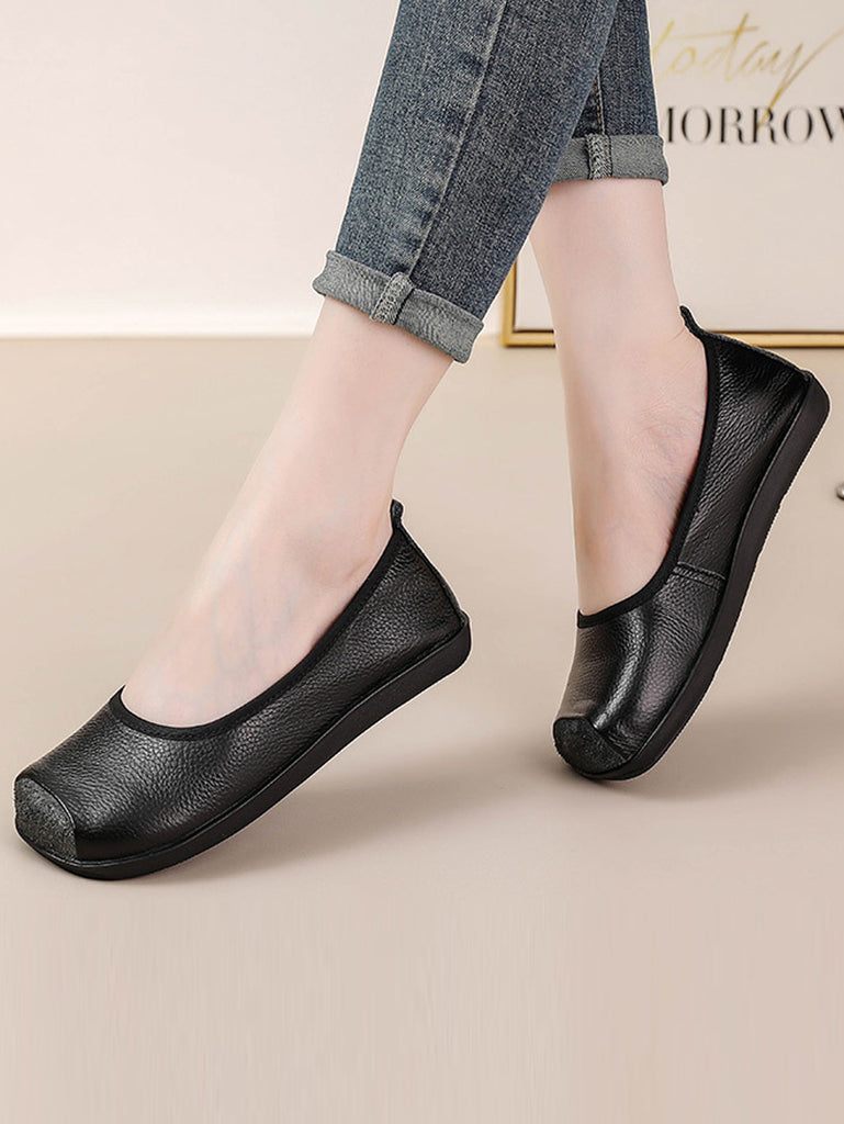 Women Autumn Genuine Leather Spliced Flat Shoes