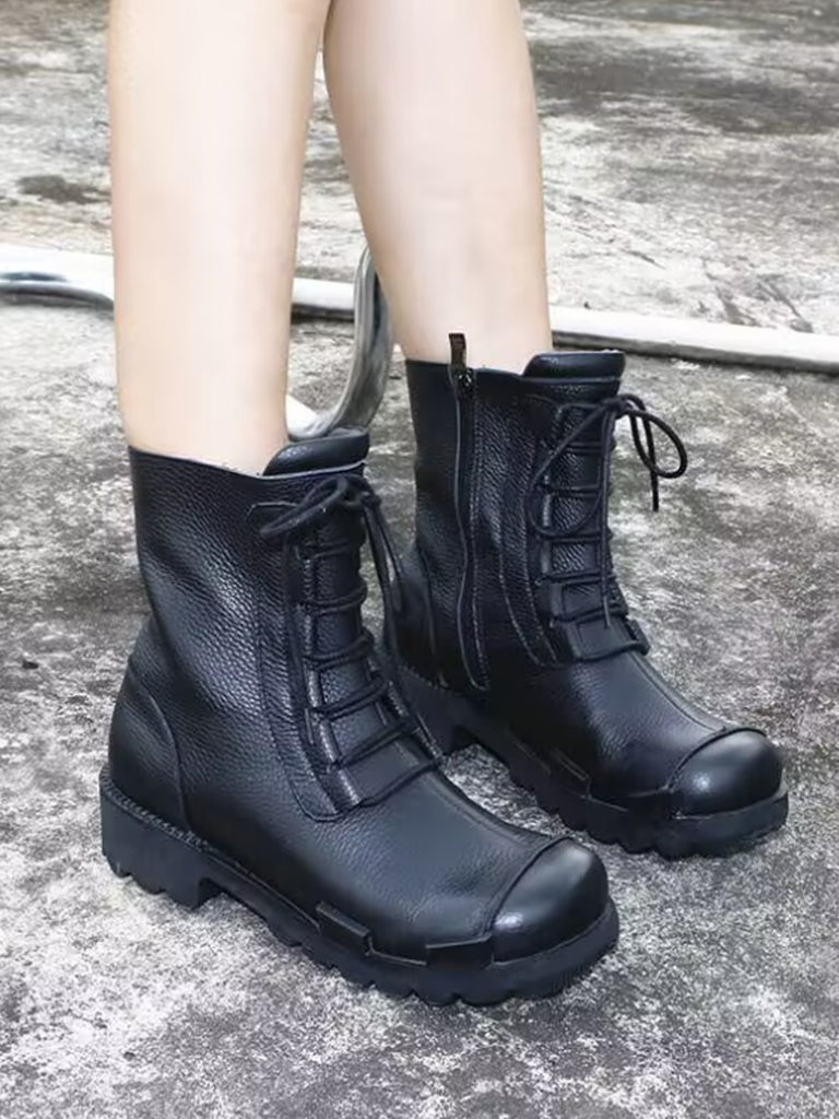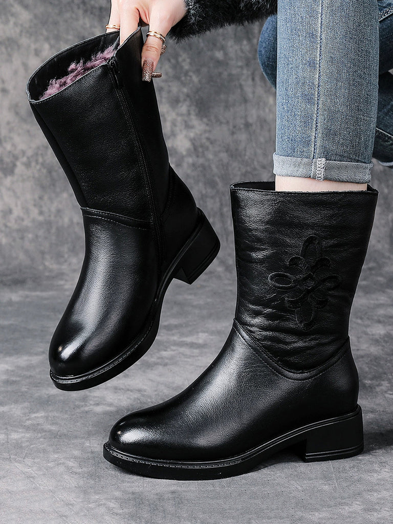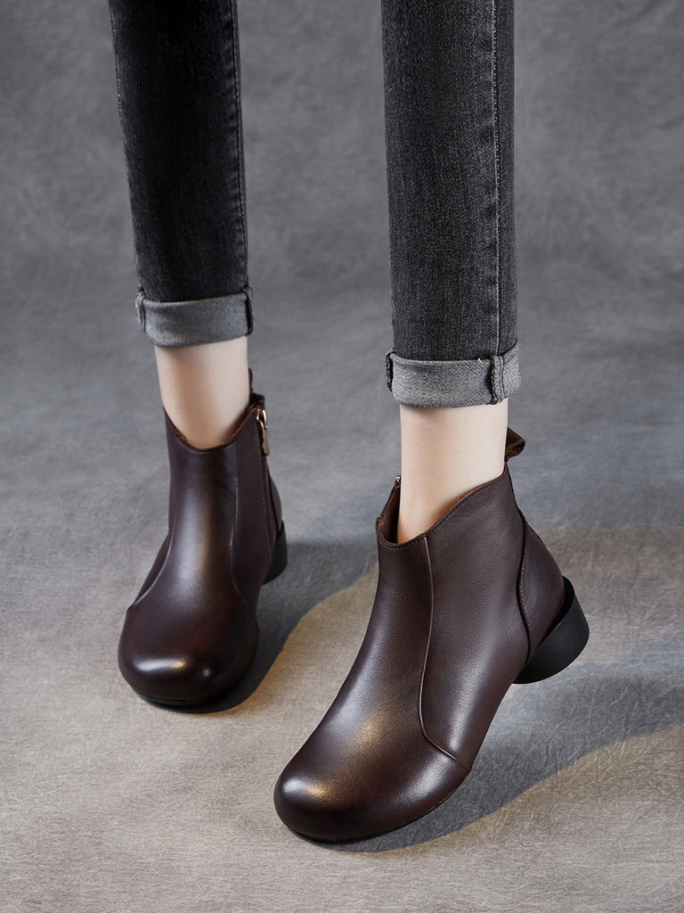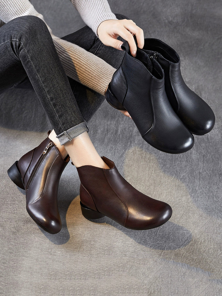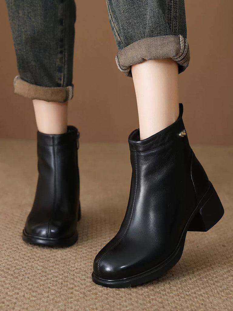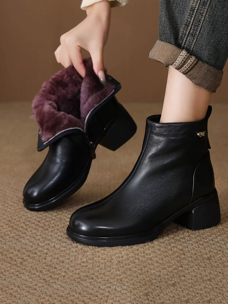 Women Winter Solid Leather Fleece-lined Ankle Boots