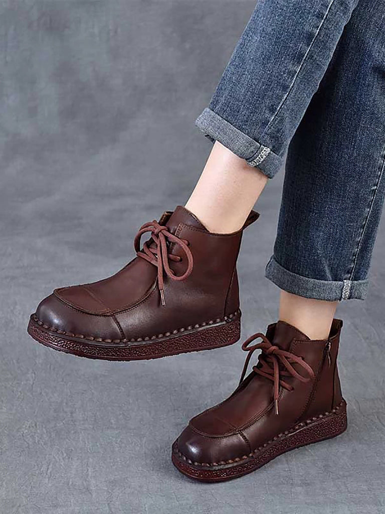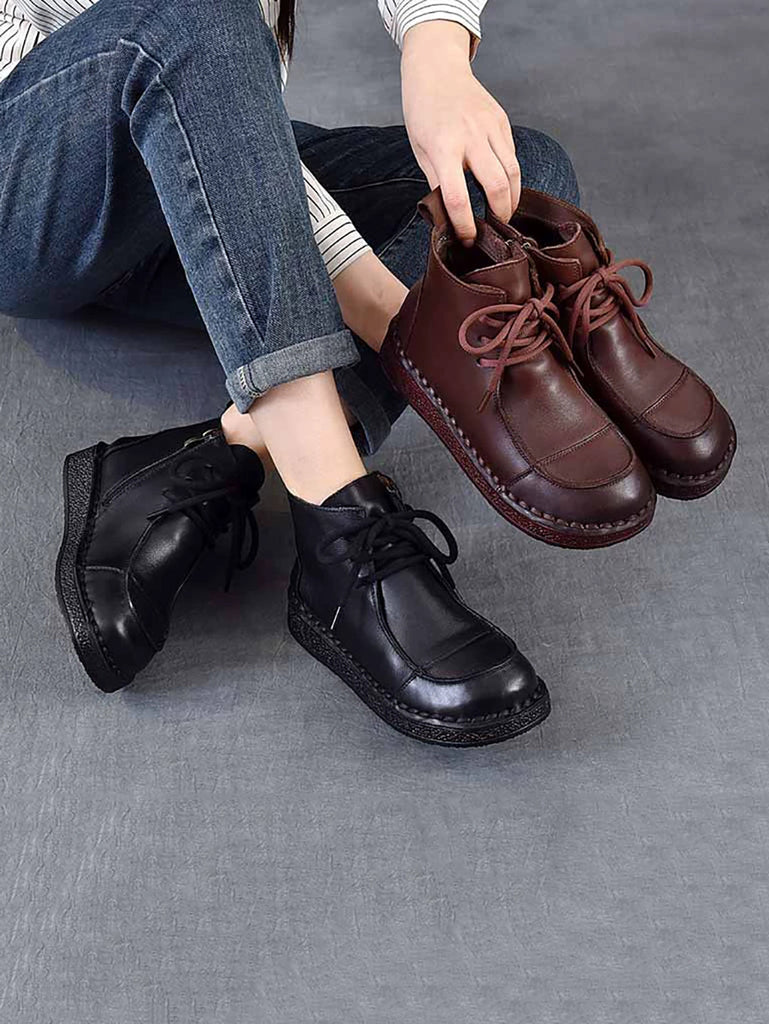 Women Winter Retro Leather Fleece-lined Ankle Boots