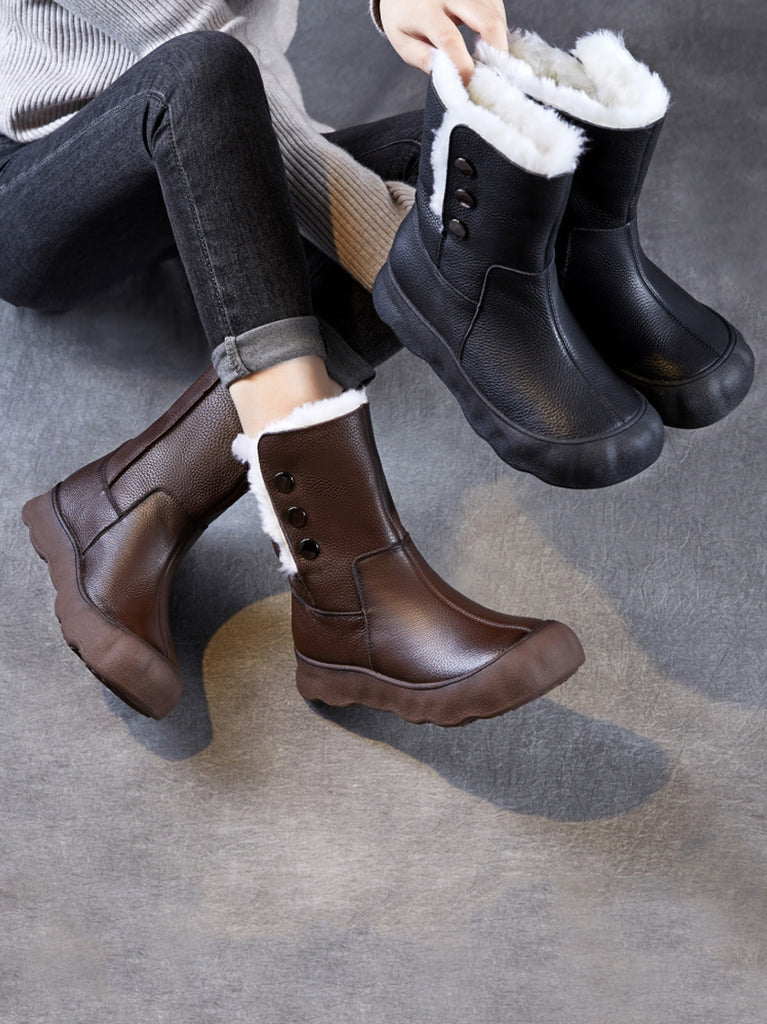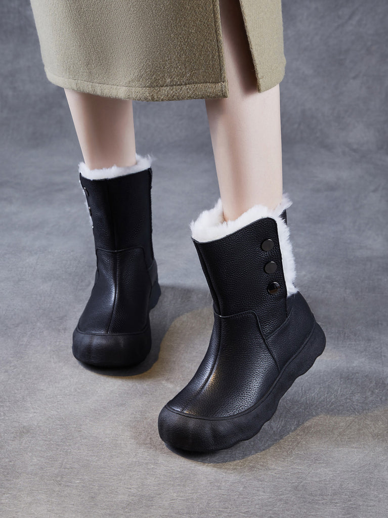 Women Winter Genuine Leather Spliced Fleece-lined Boots
