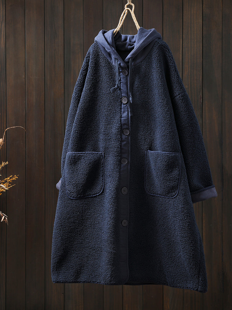 Plus Size Women Winter Casual Button Pocket Hooded Coat
