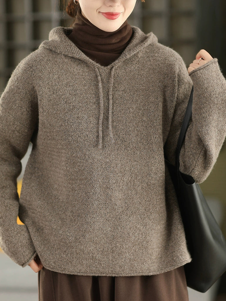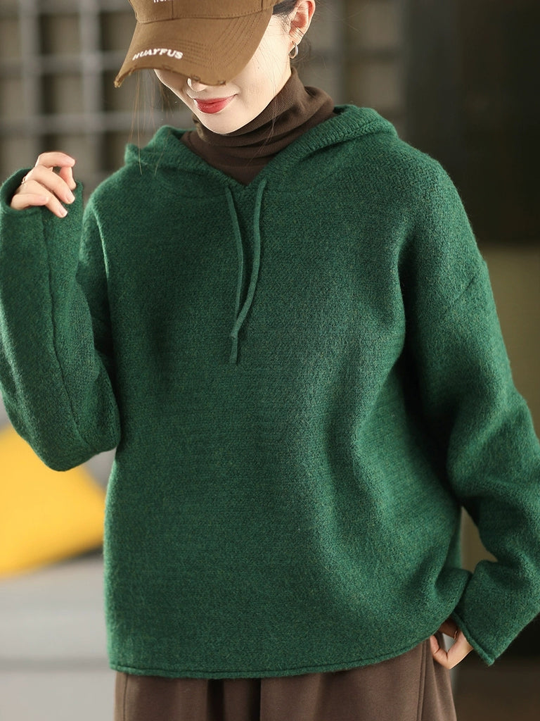 Plus Size Women Autumn Artsy Solid O-neck Cable Knit Sweater Coat
