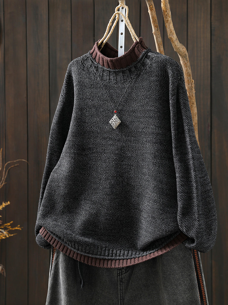 Women Autumn Artsy Pure Color Turtleneck Sweater