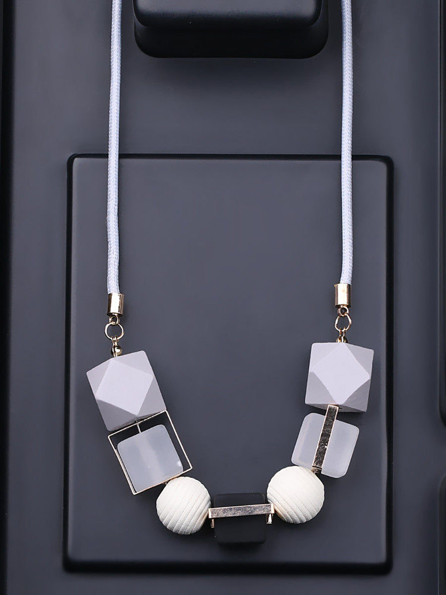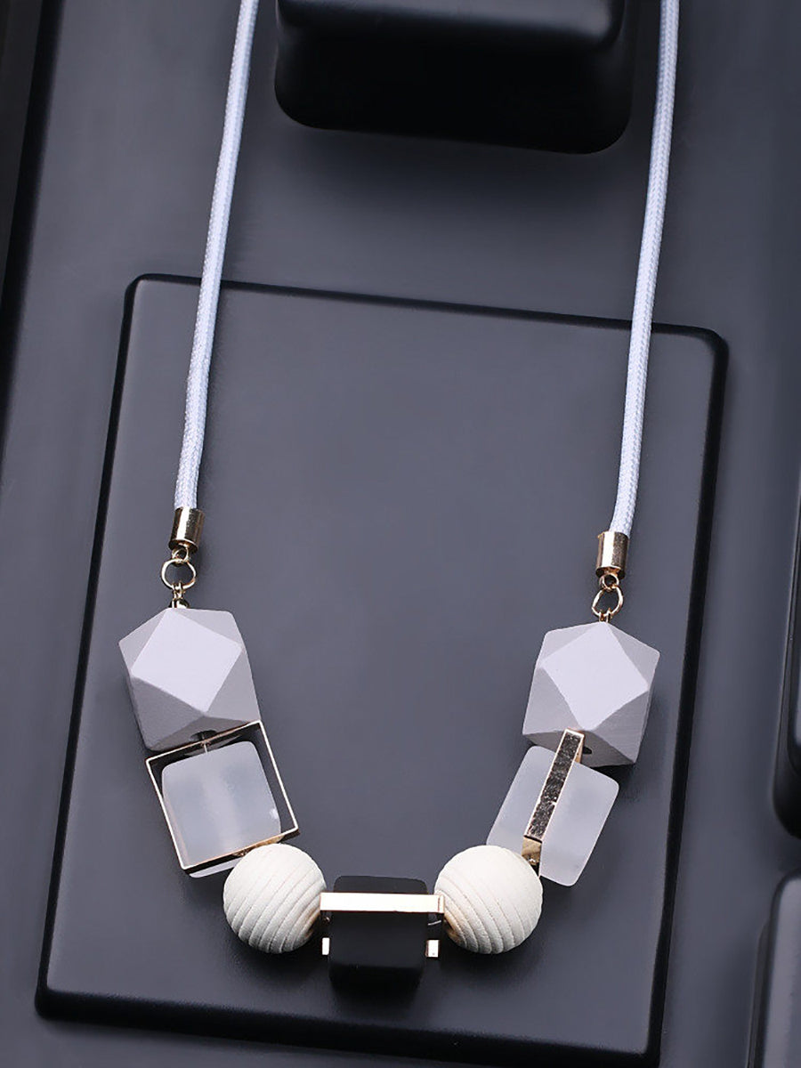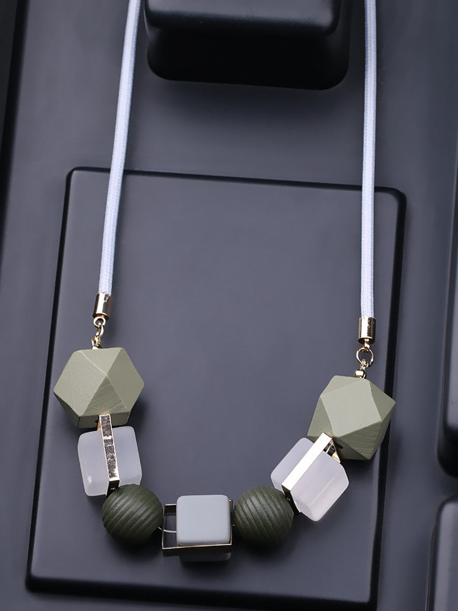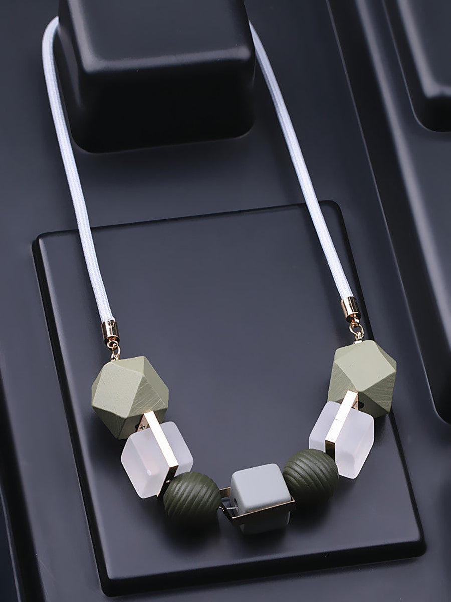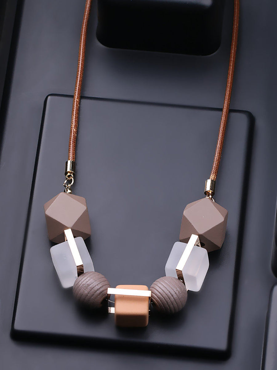 Women Ethnic Resin Stone Wooden Weave Necklace