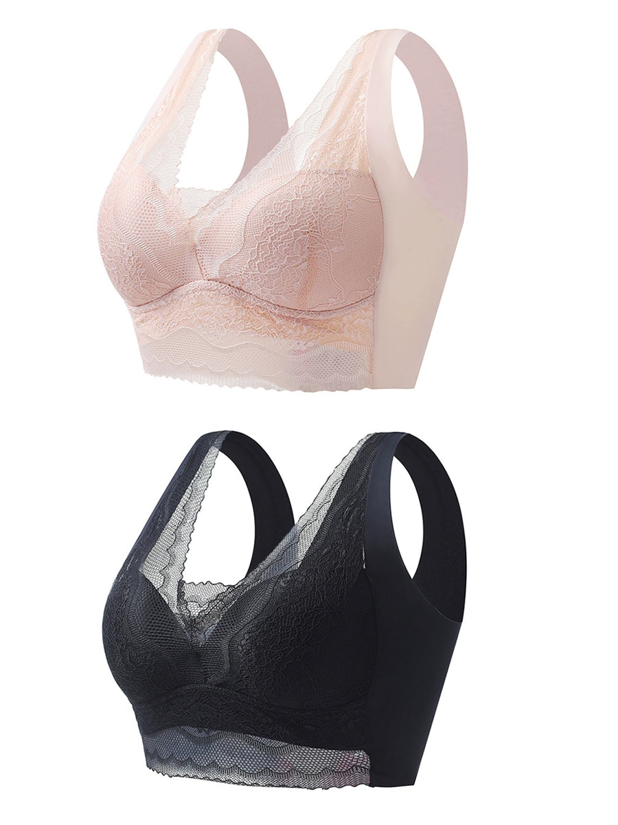 2 Pieces Women Artsy Lace One-piece Wireless Bra