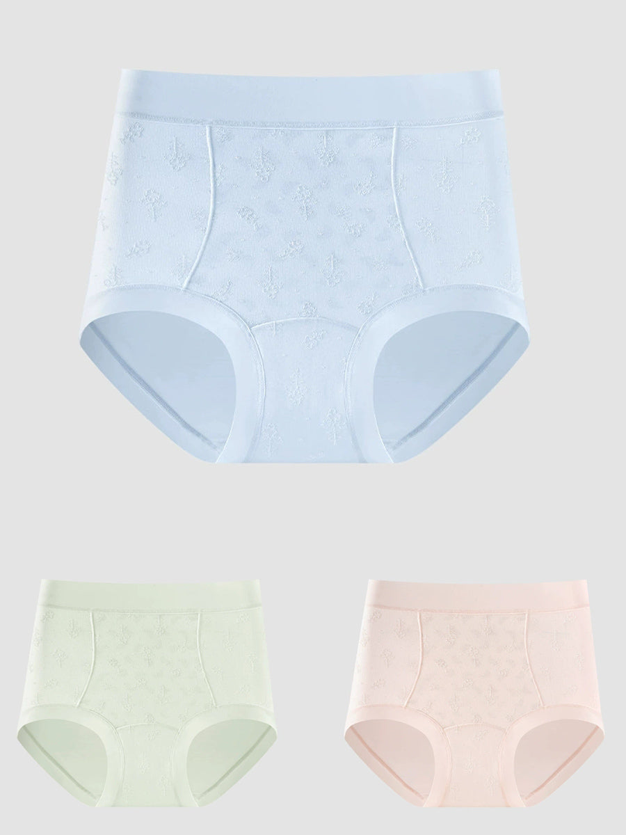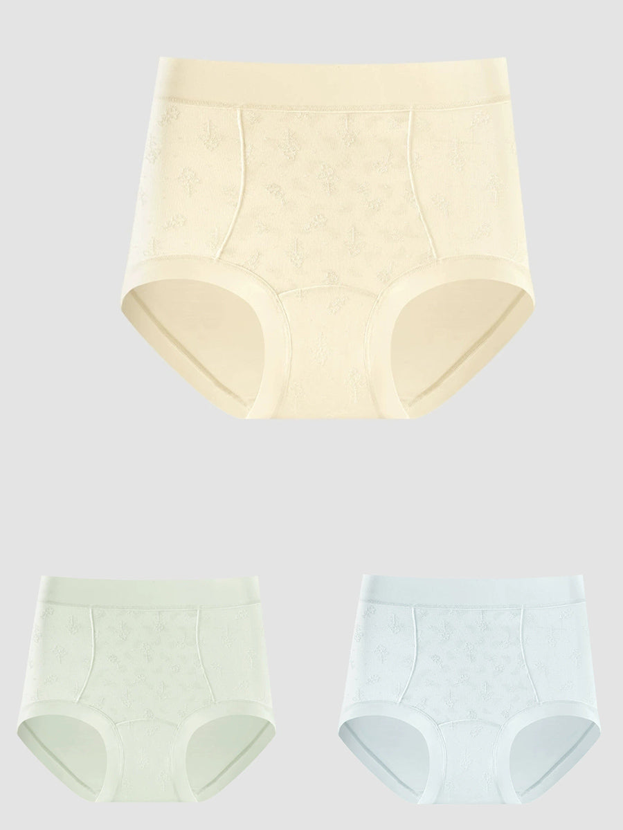 3 Pieces Women Artsy Embrossing High Waist Underwear