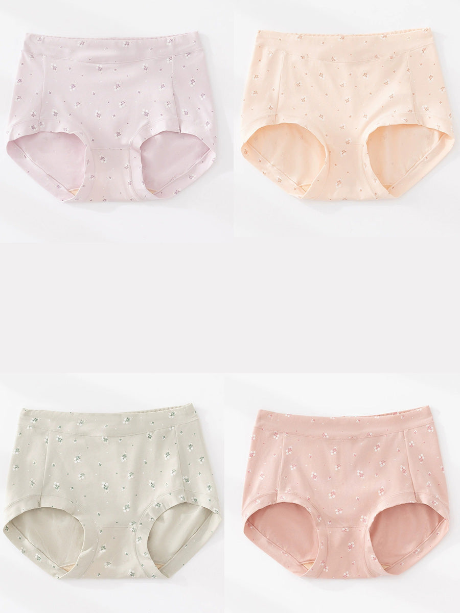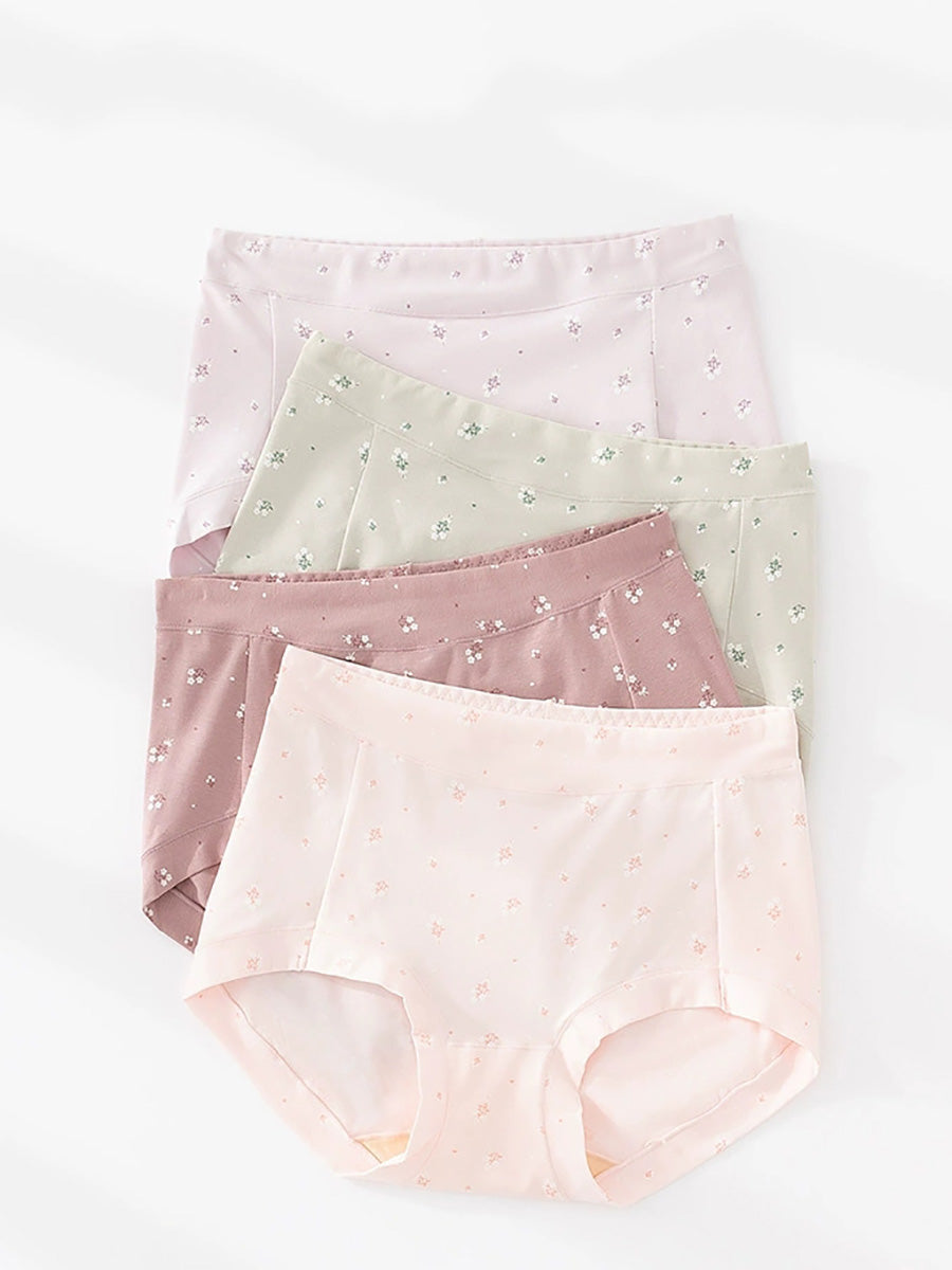 4 Pieces Women Artsy Floral High Waist Underwear