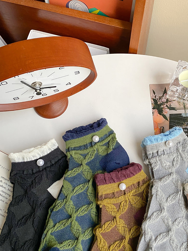 5 Pairs Women Artsy Rhomboids Colorblock Cotton Socks