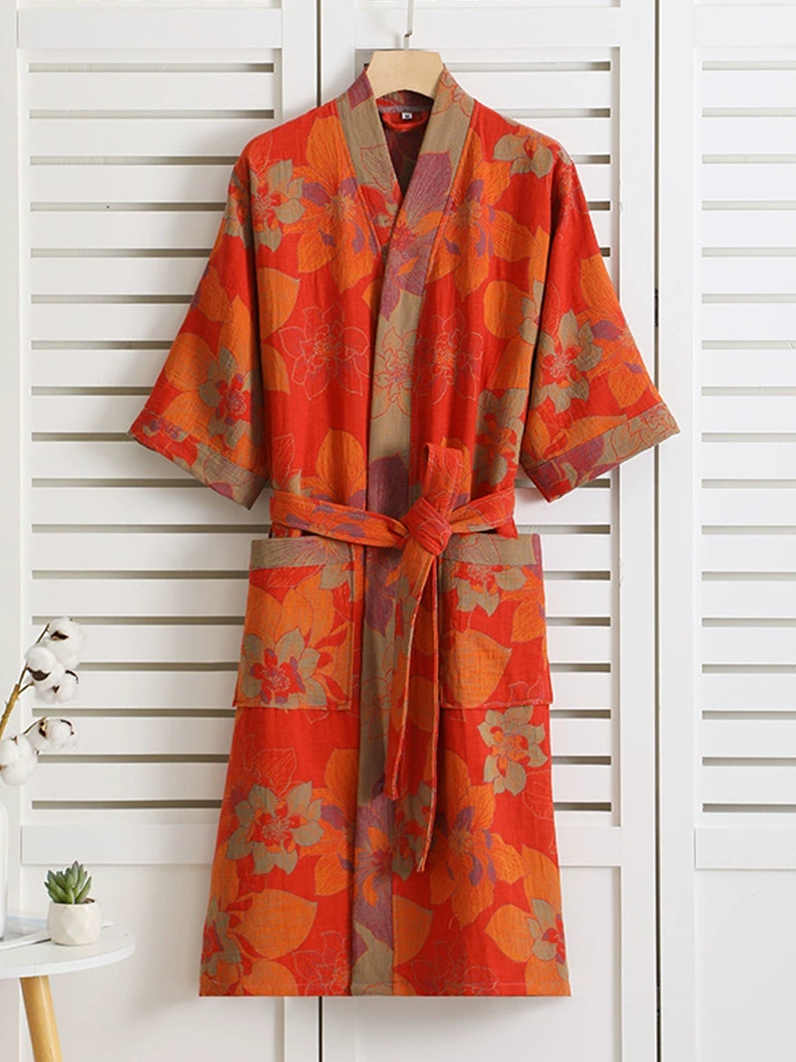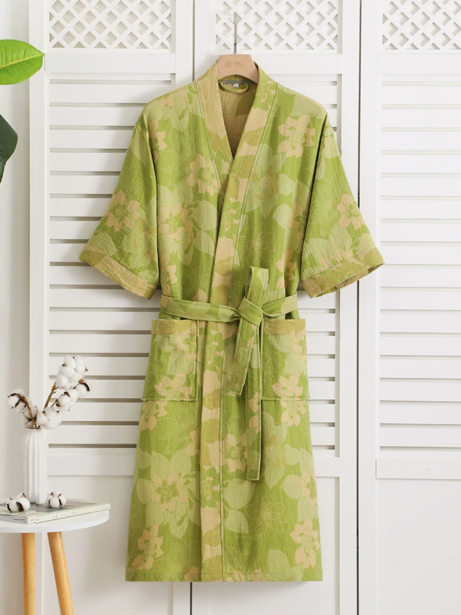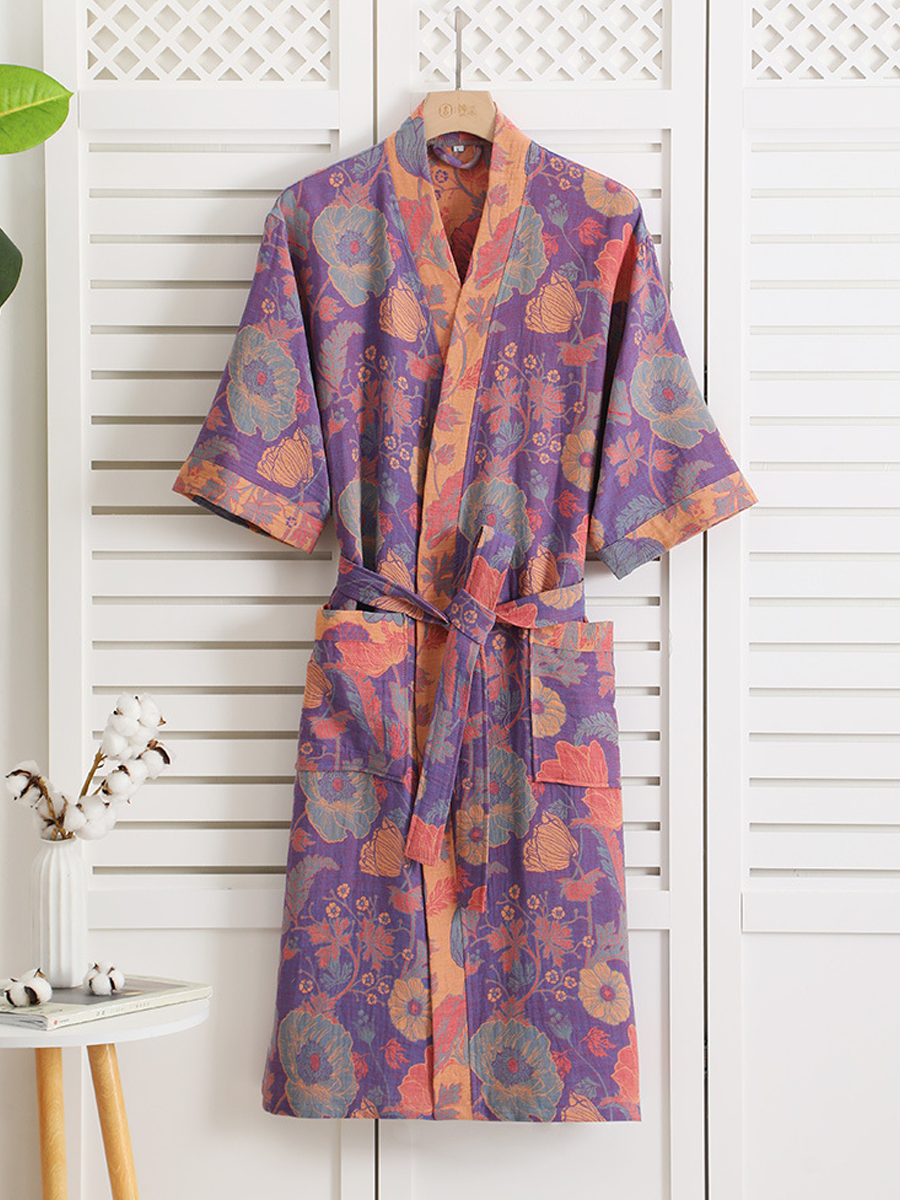 Floral Print Cotton Gauze Summer Bathrobe