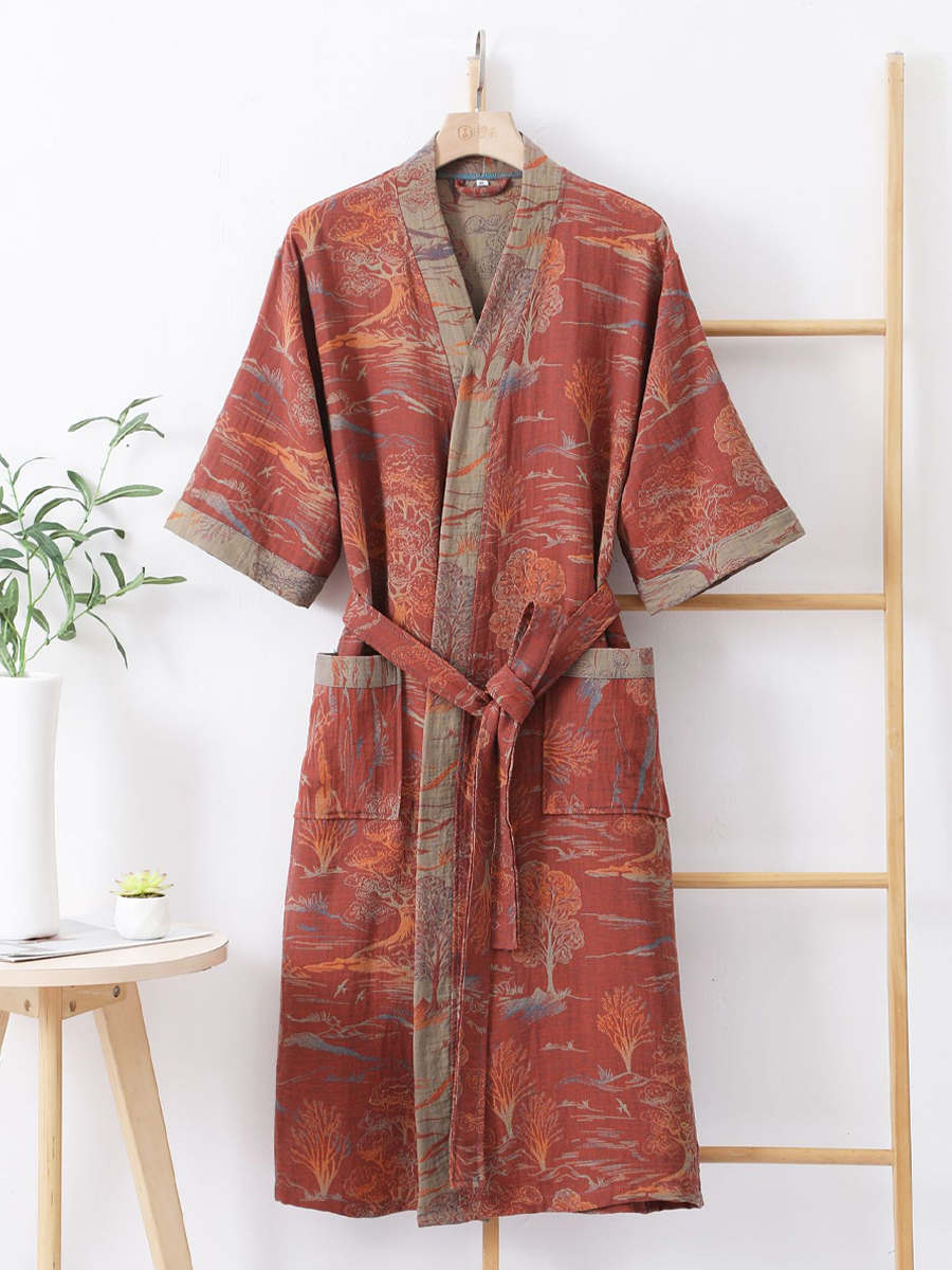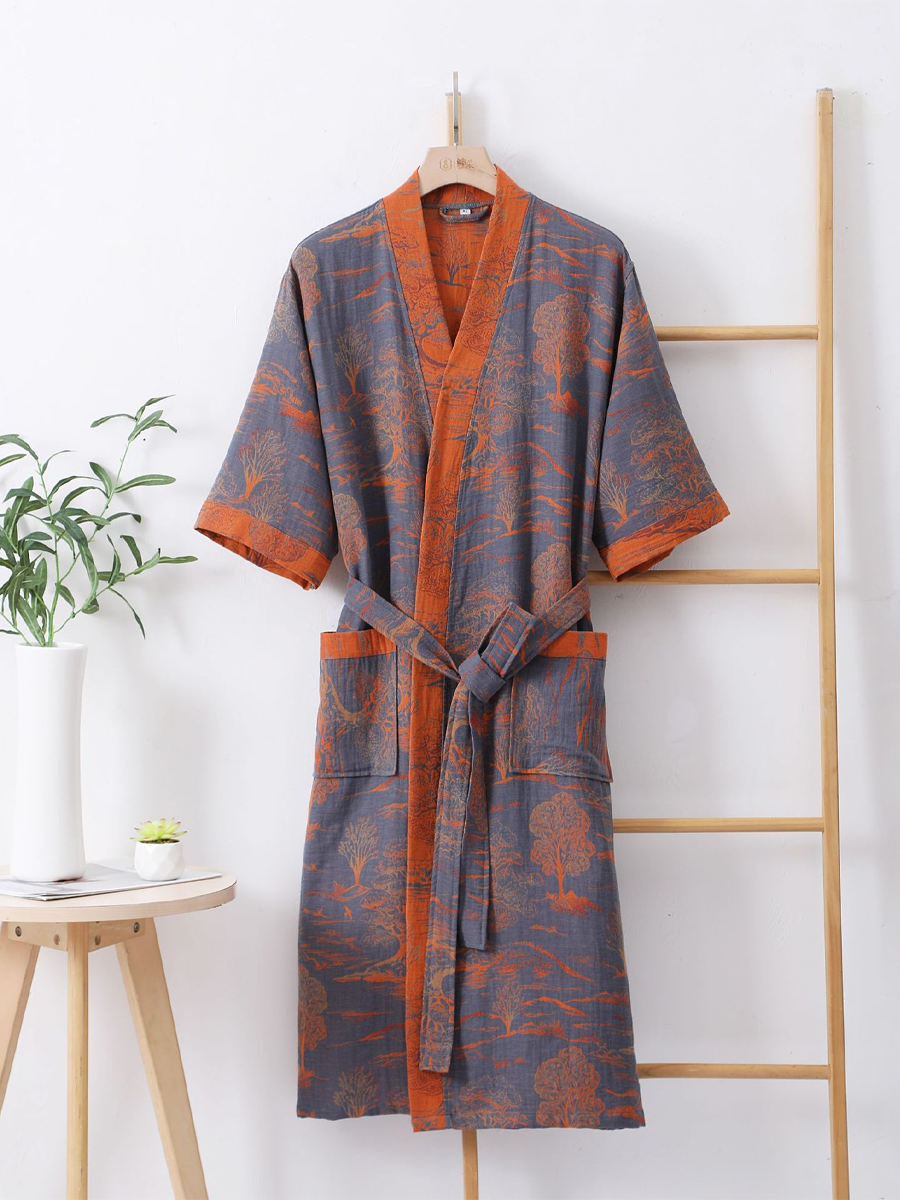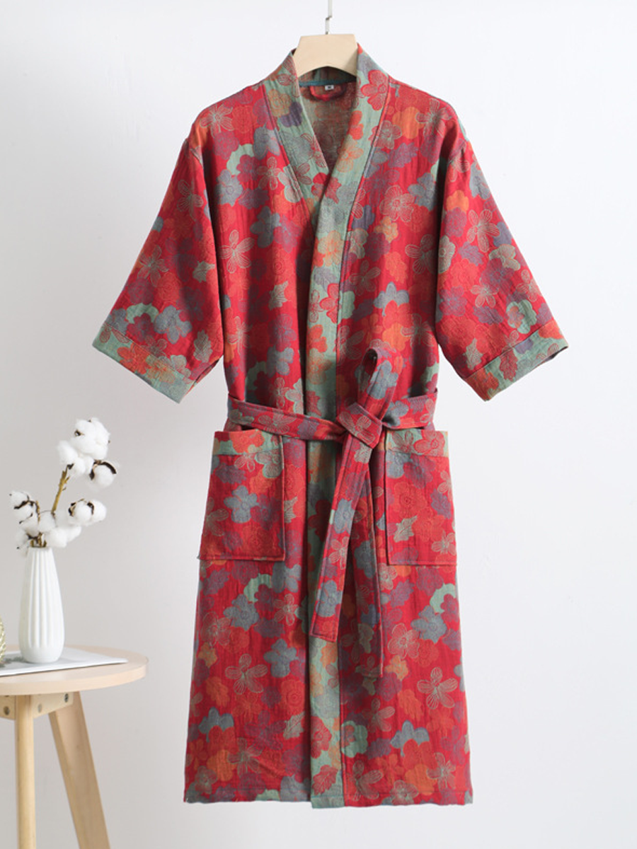 Floral Print Cotton Gauze Summer Bathrobe