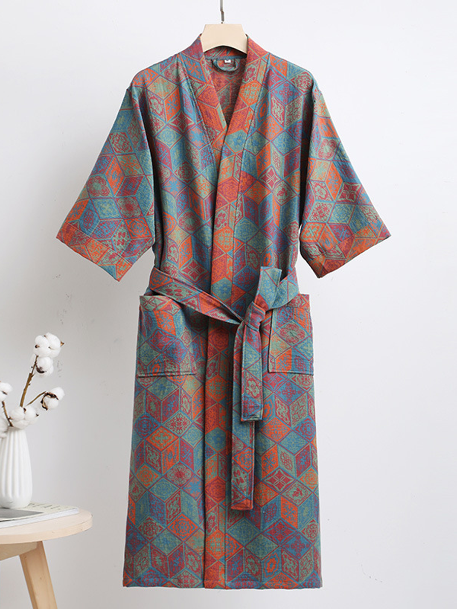 Made from 100% pure cotton double-layer gauze, this lightweight, breathable robe features a loose fit and elegant floral pattern. With an adjustable belt and long length, it offers comfort and style for your relaxation.