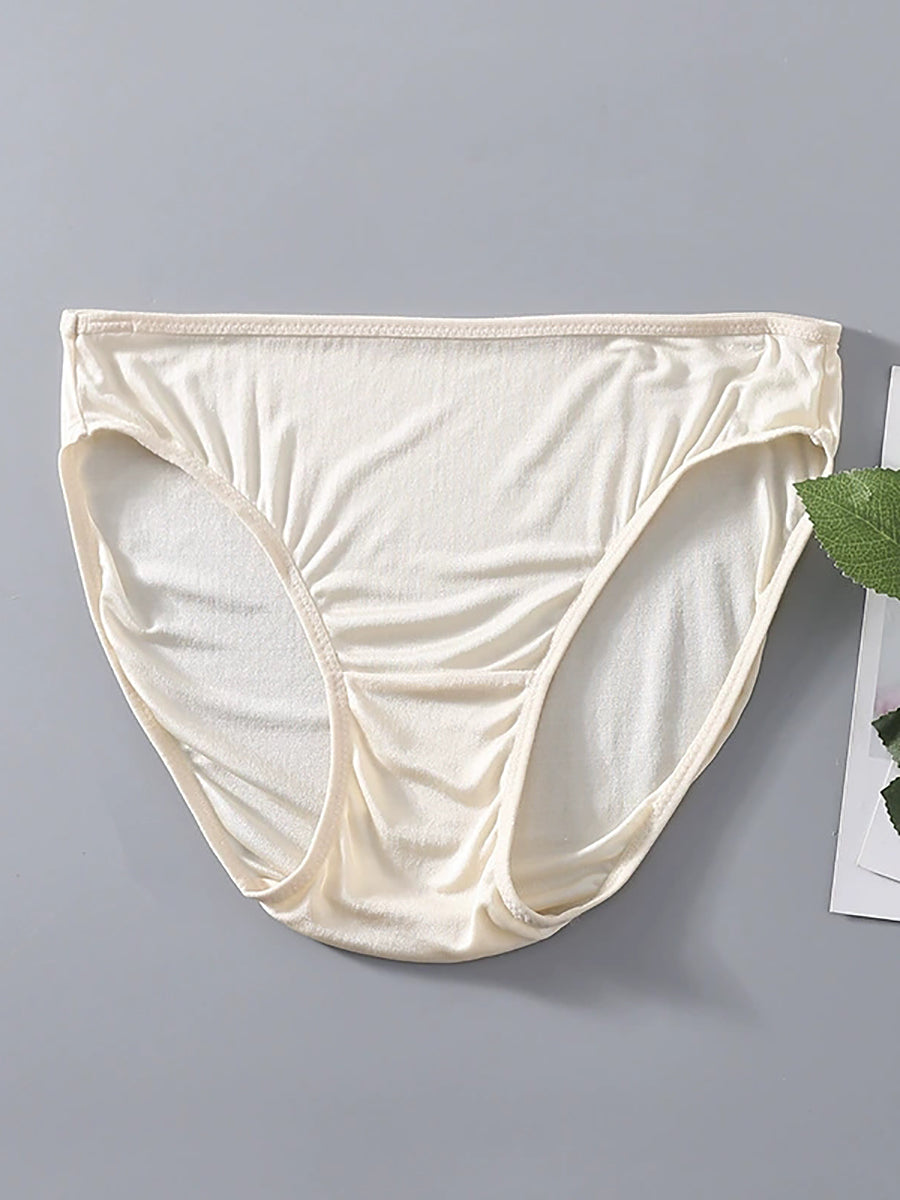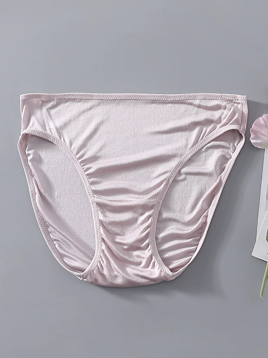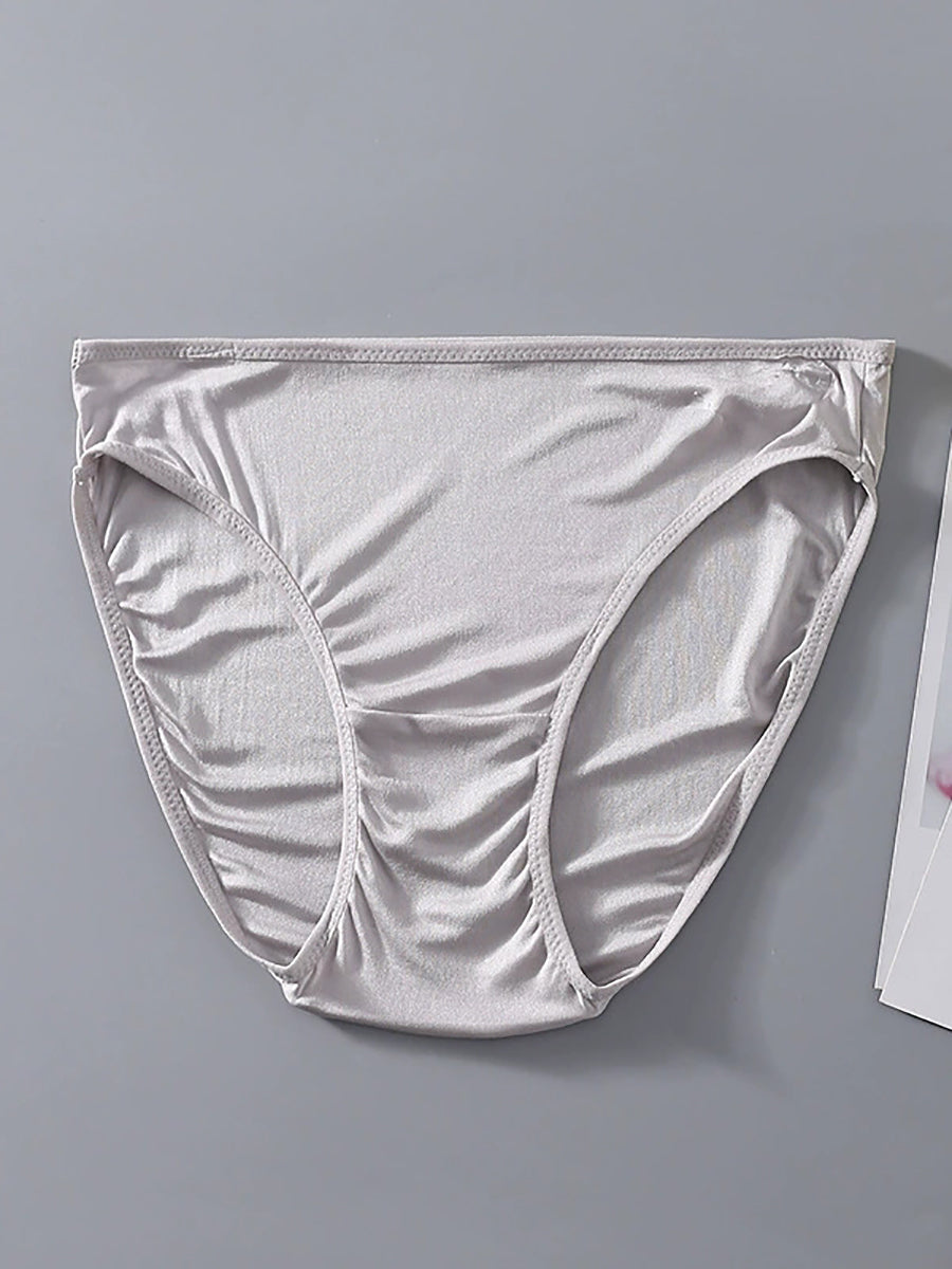 Women Artsy Pure Color High Waist Silk Underwear