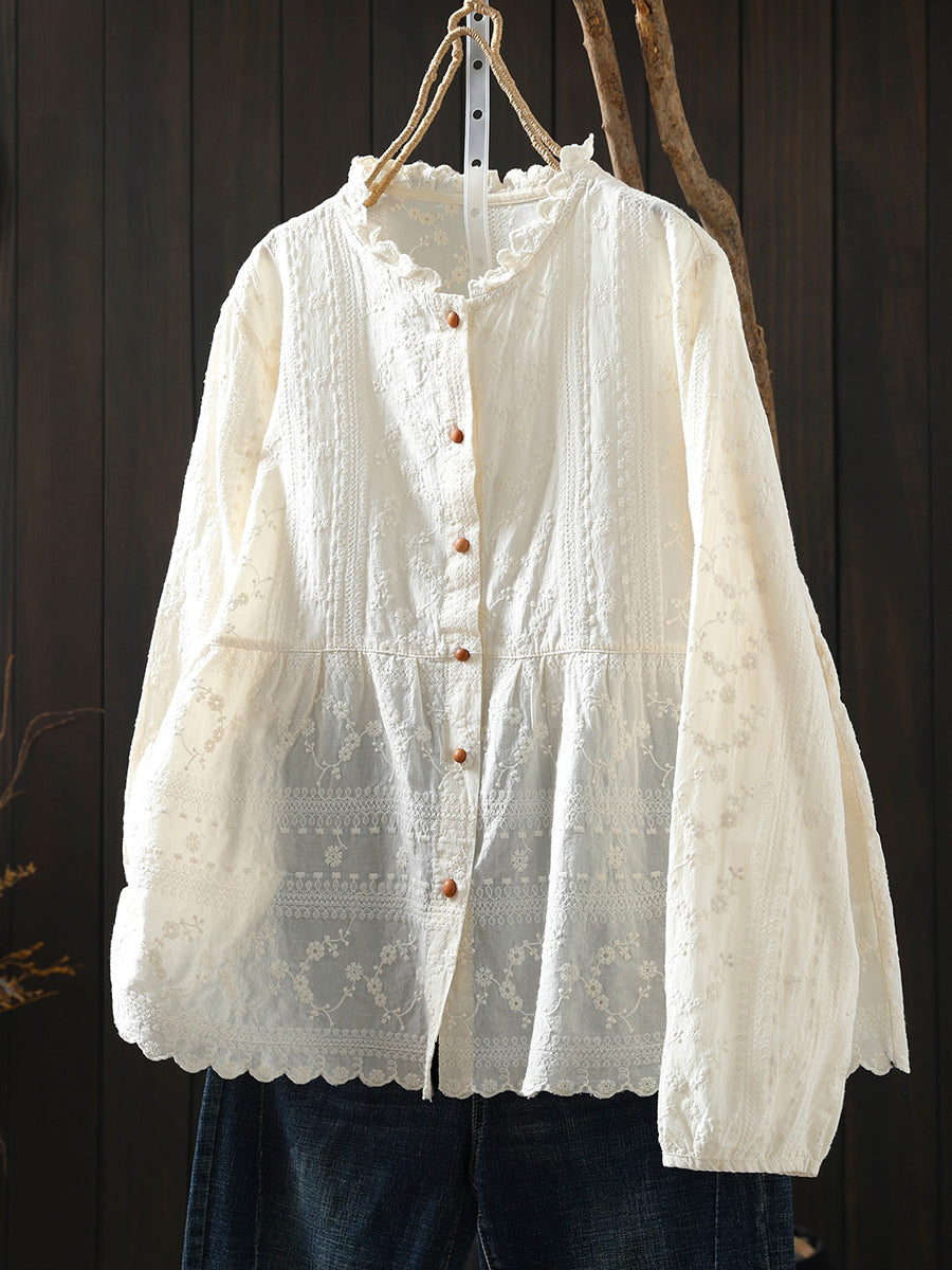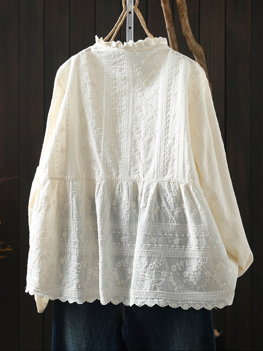 Women Artsy Spring Embroidery 100%Cotton Shirt