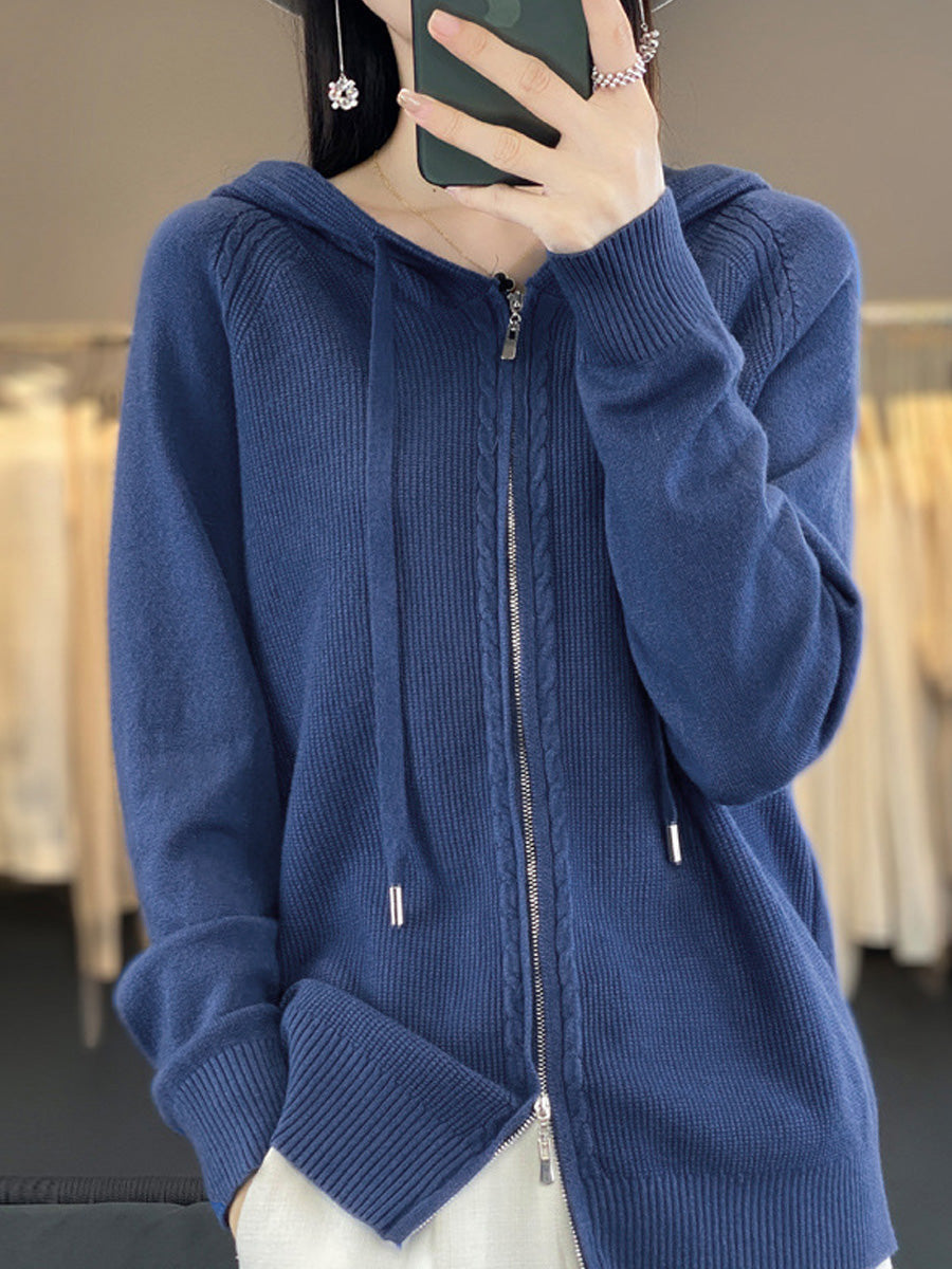 Women Autumn Casual Pure Color Hooded Sweater