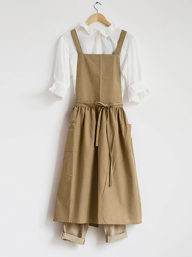 Women Casual Solid Summer Cotton Apron Dress