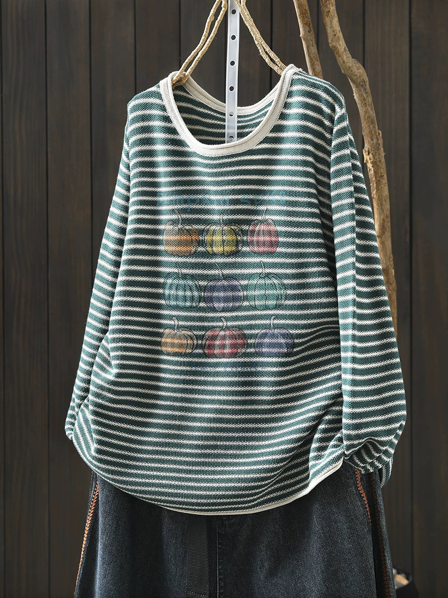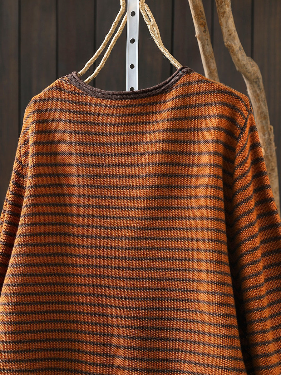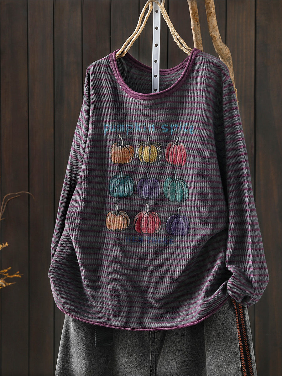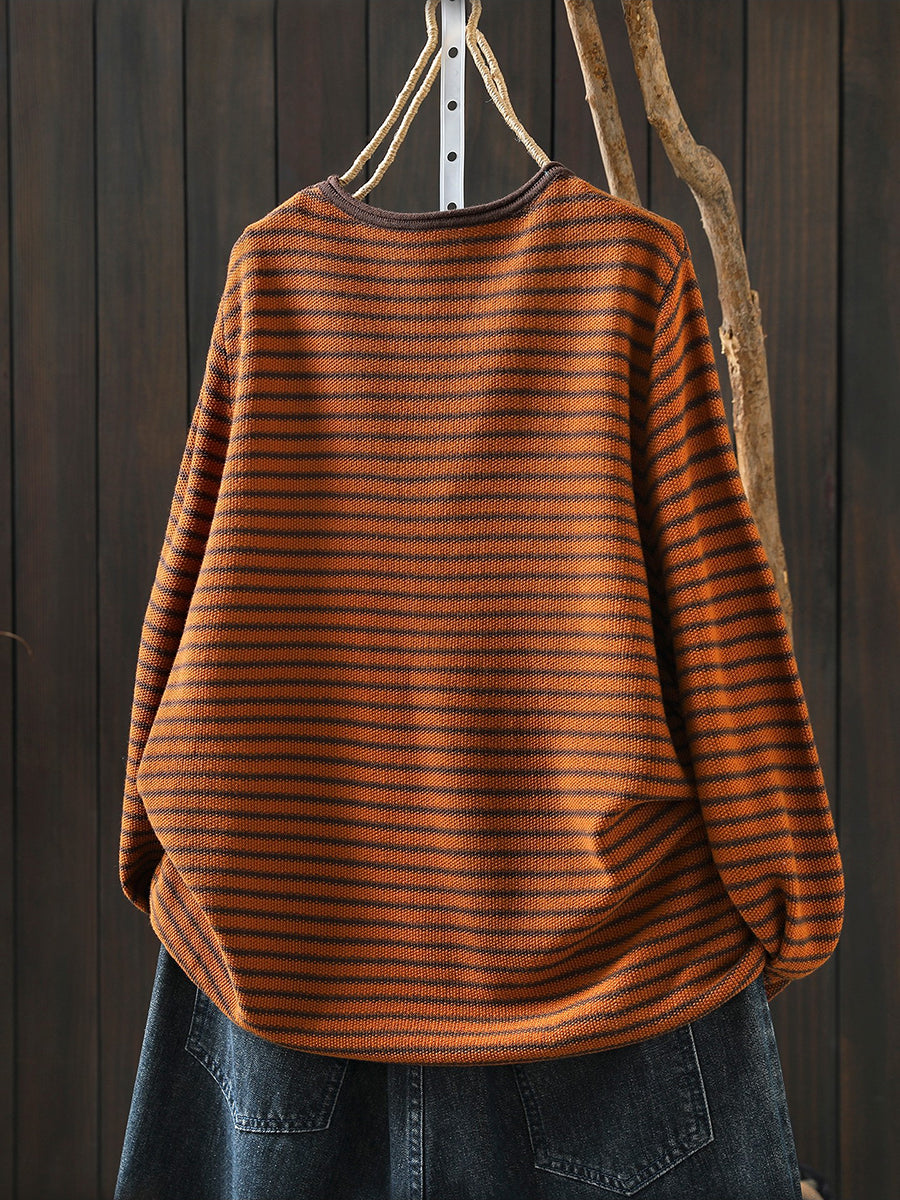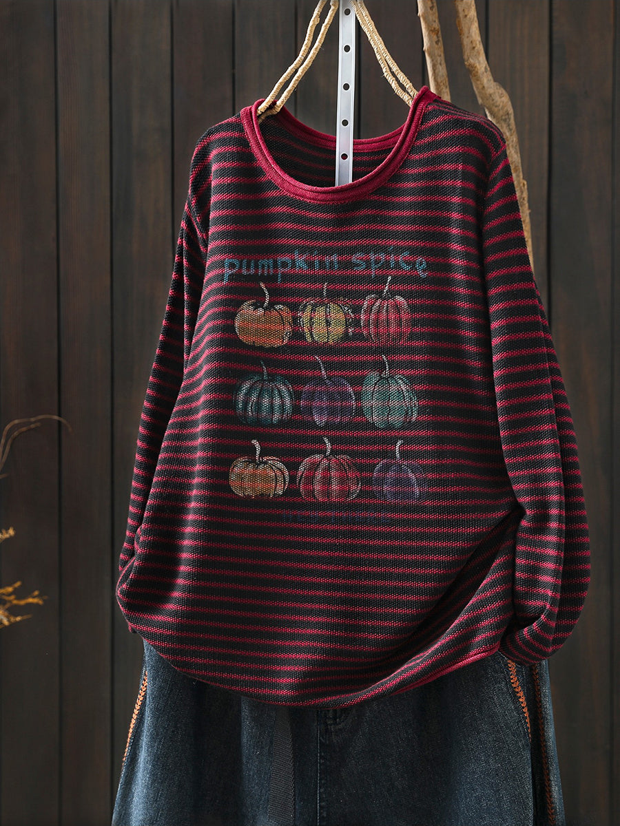 Women Casual Spring Stripe Pumpkin O-Neck Blouse