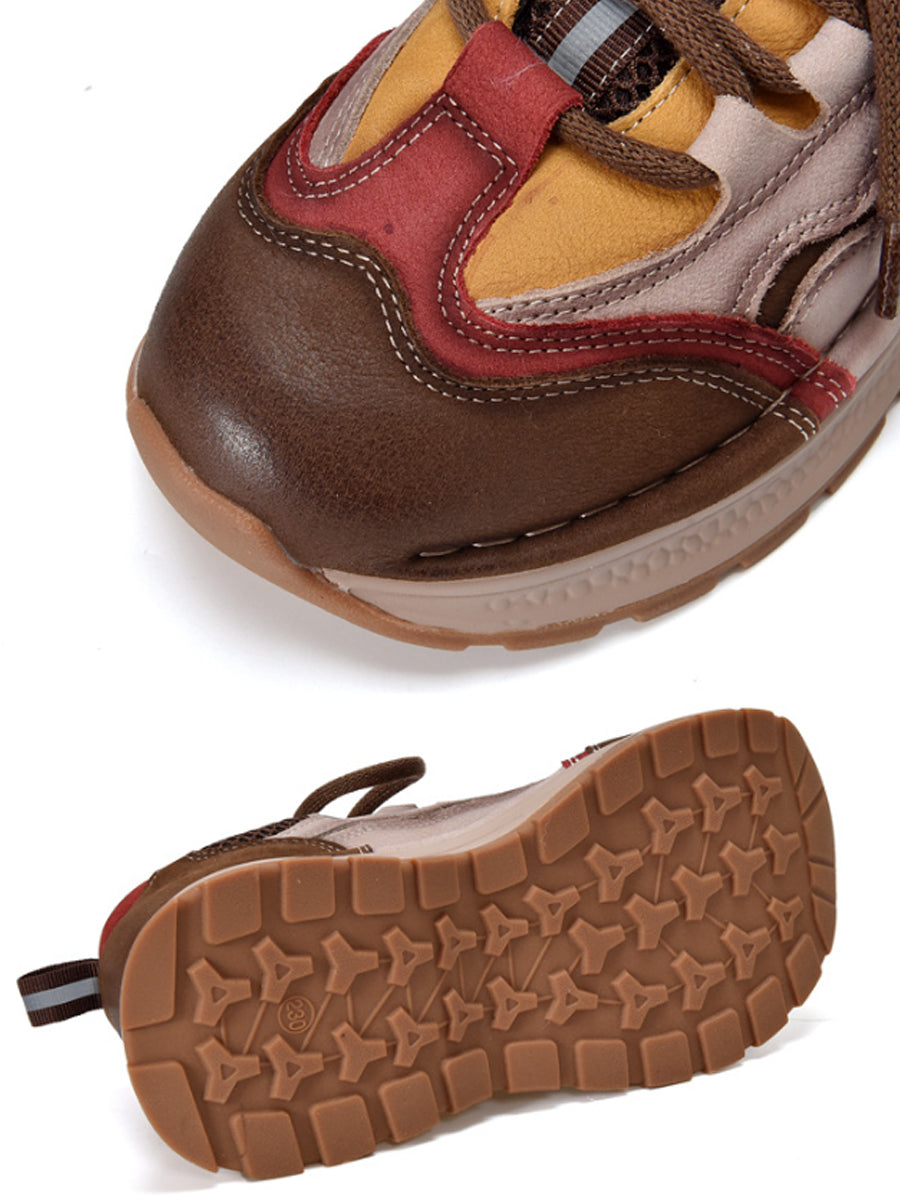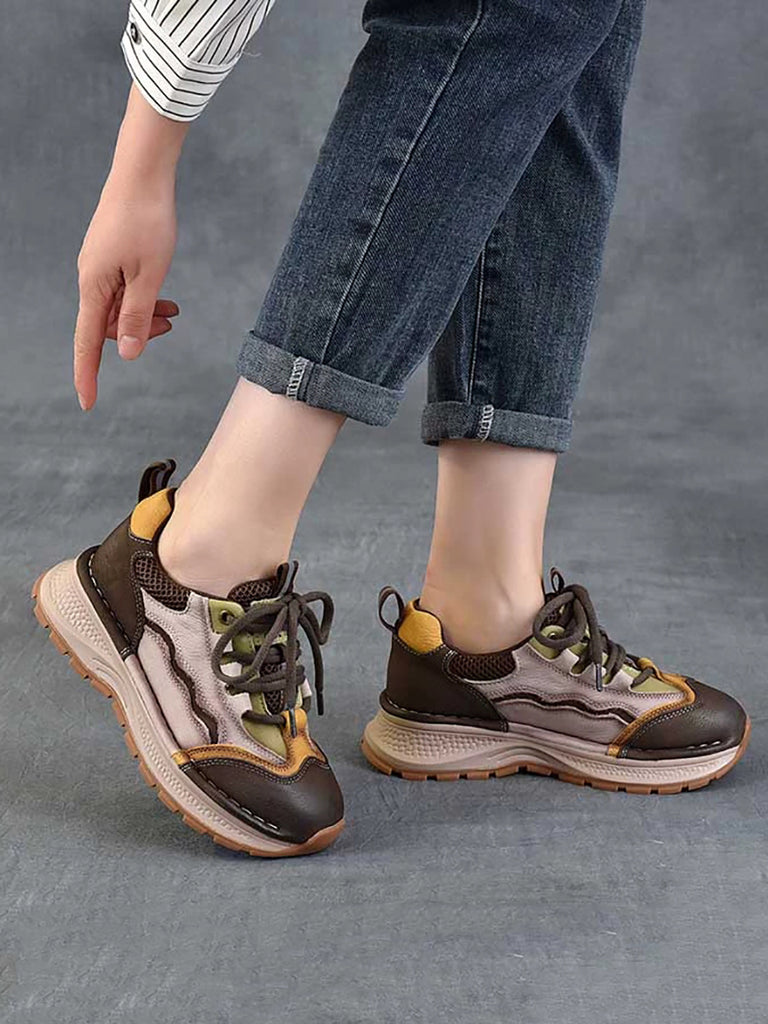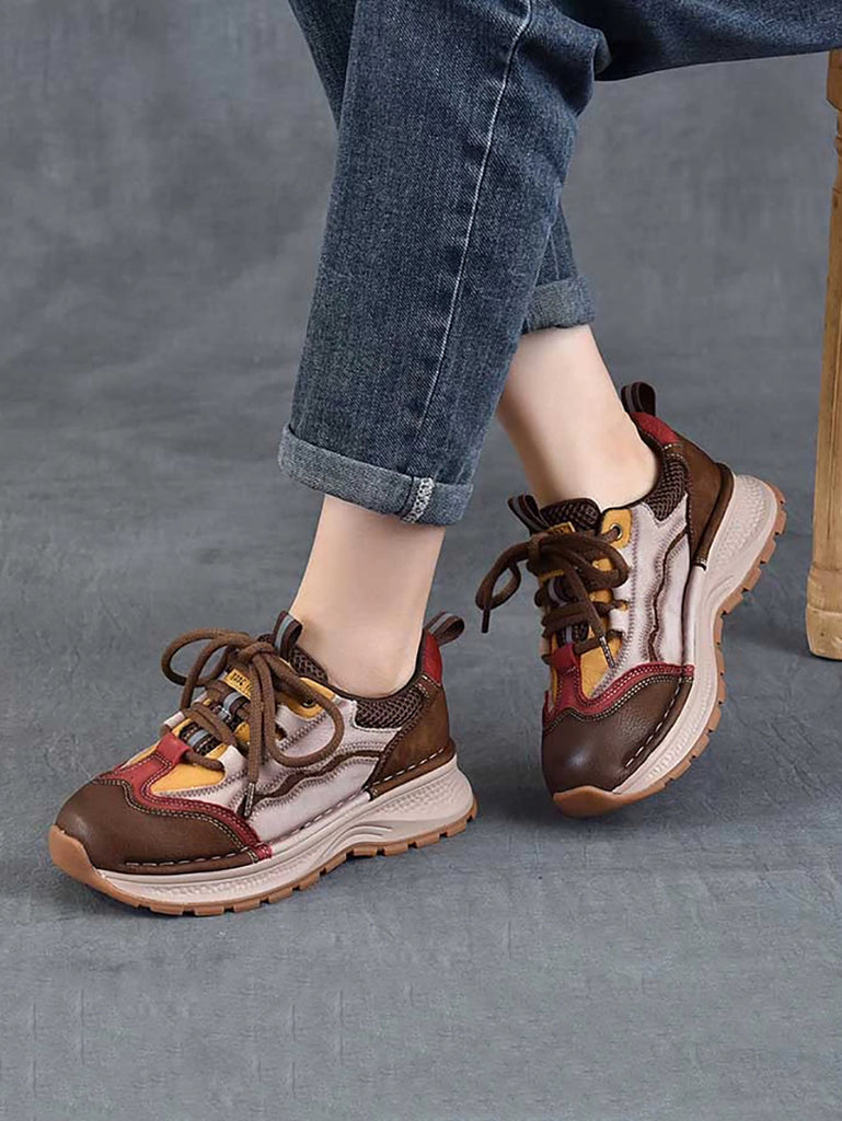 Women Retro Colorblock Leather Sport Platform Shoes