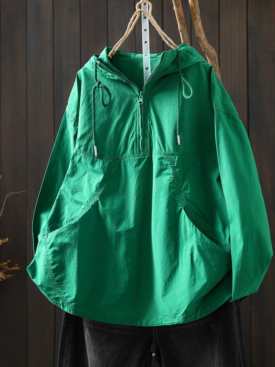Women Spring Artsy Cotton Pure Color Hoodie