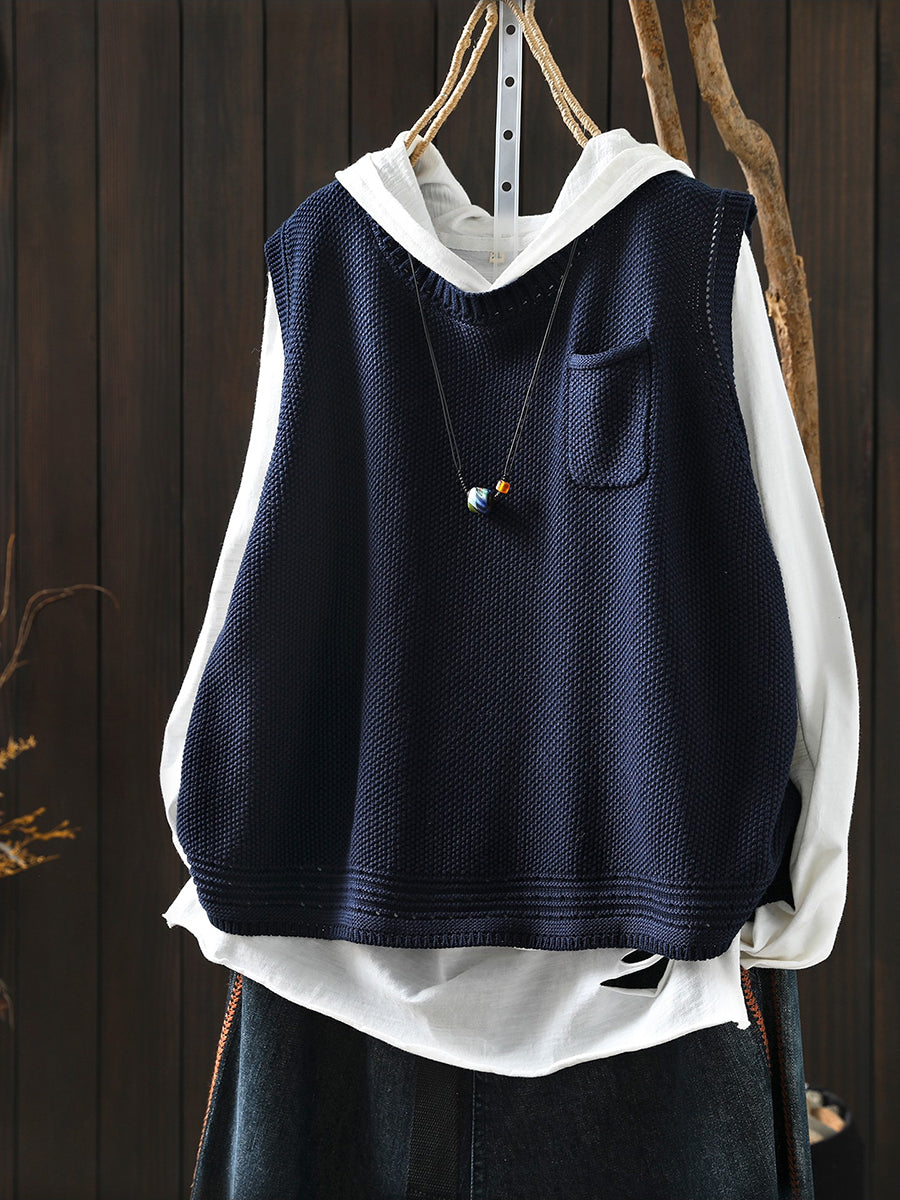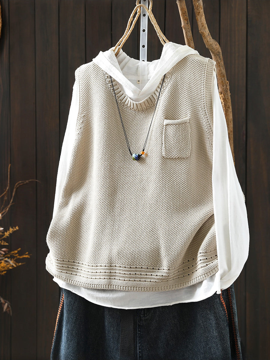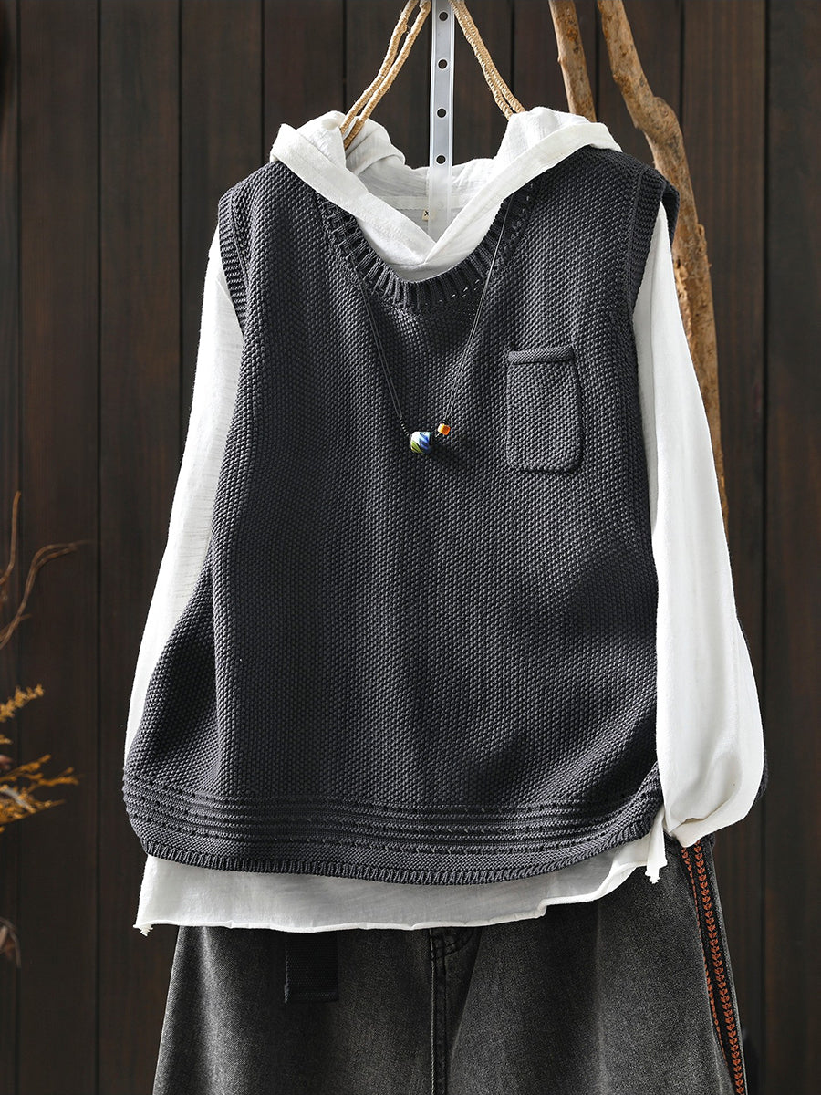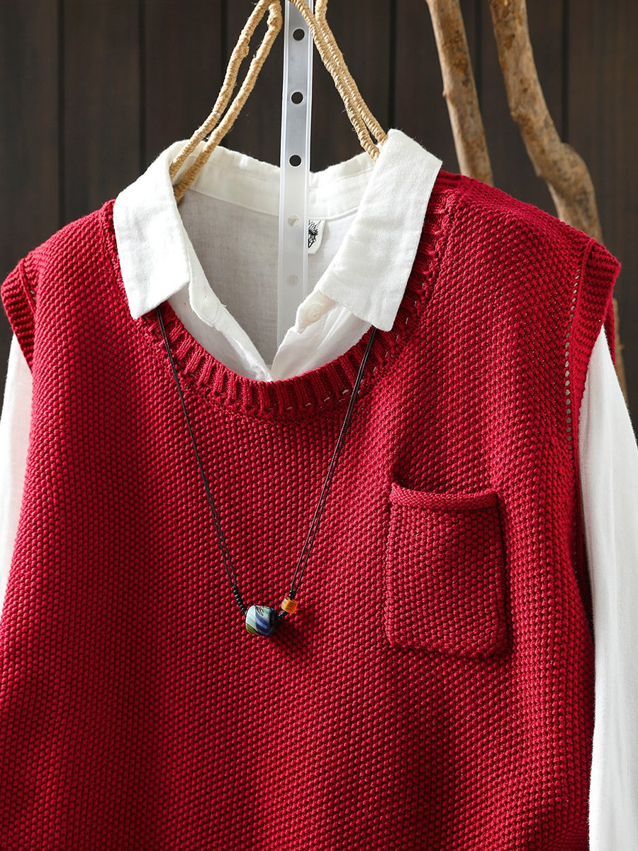 Women Spring Artsy O-Neck Pure Color Knitted Vest