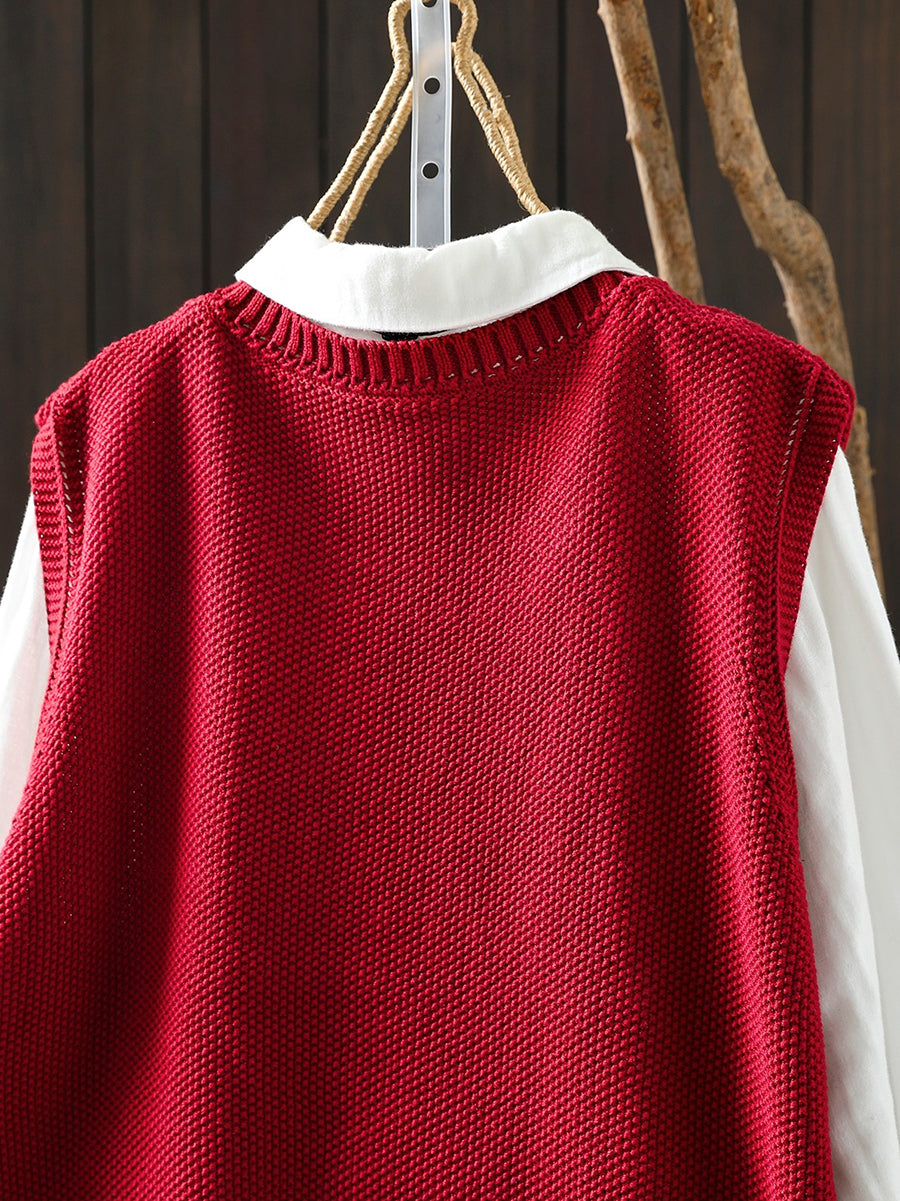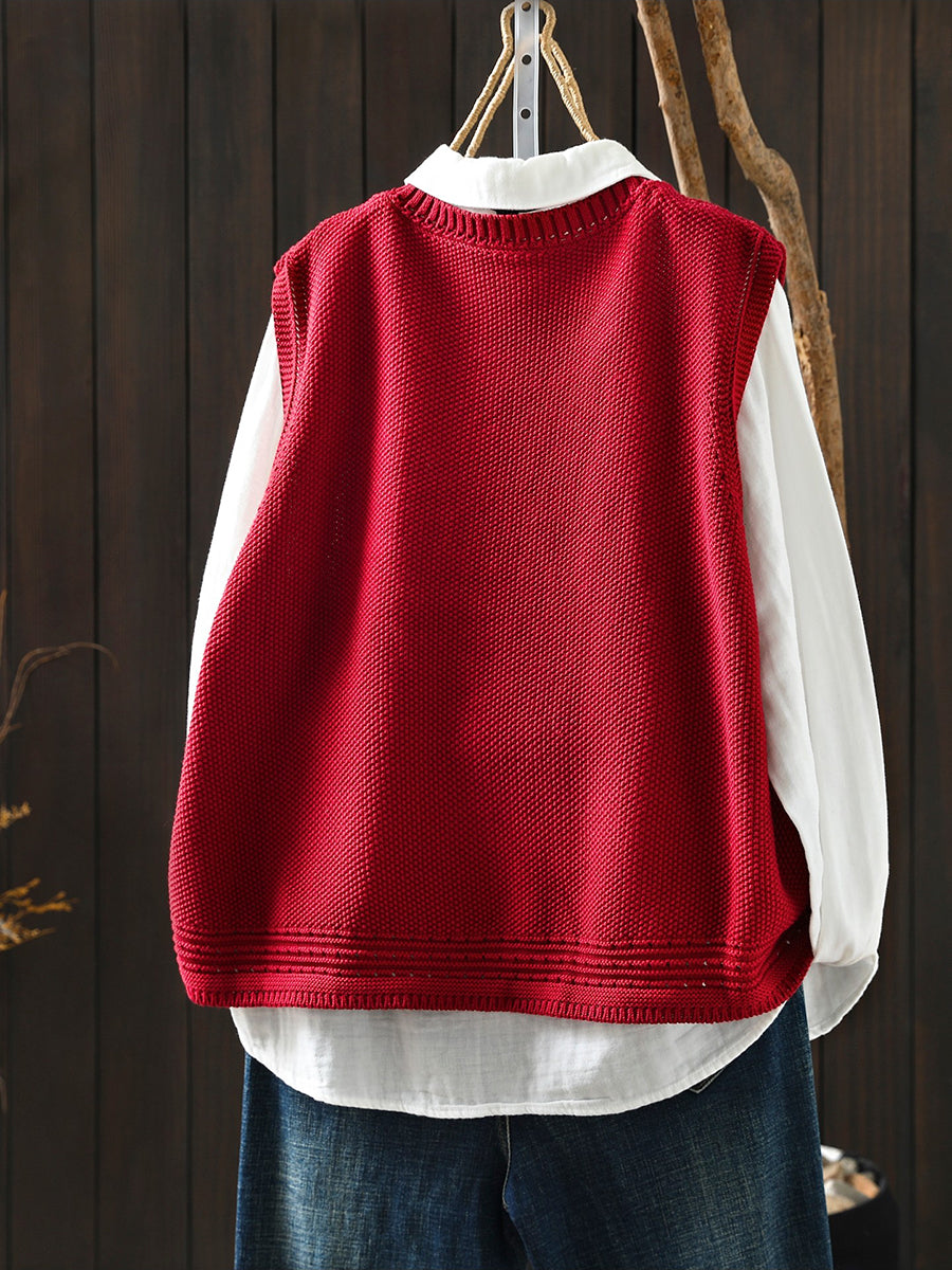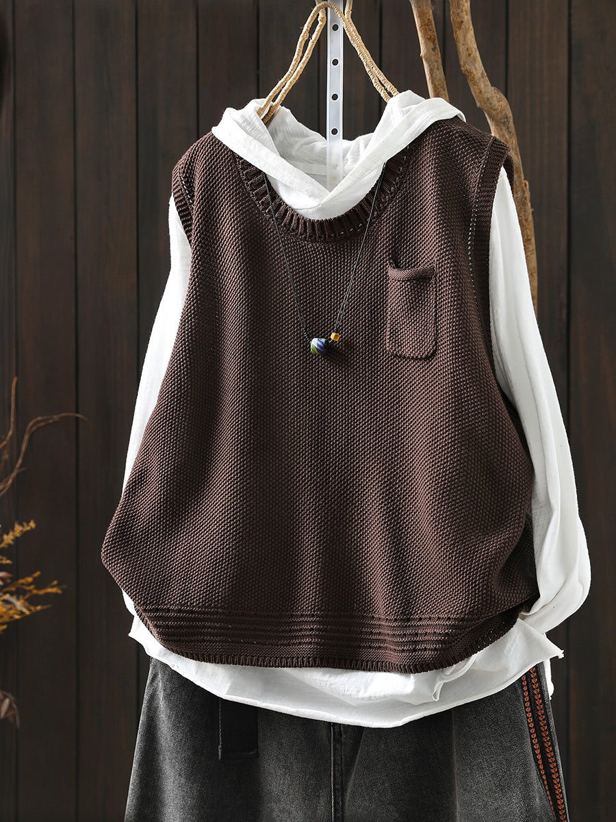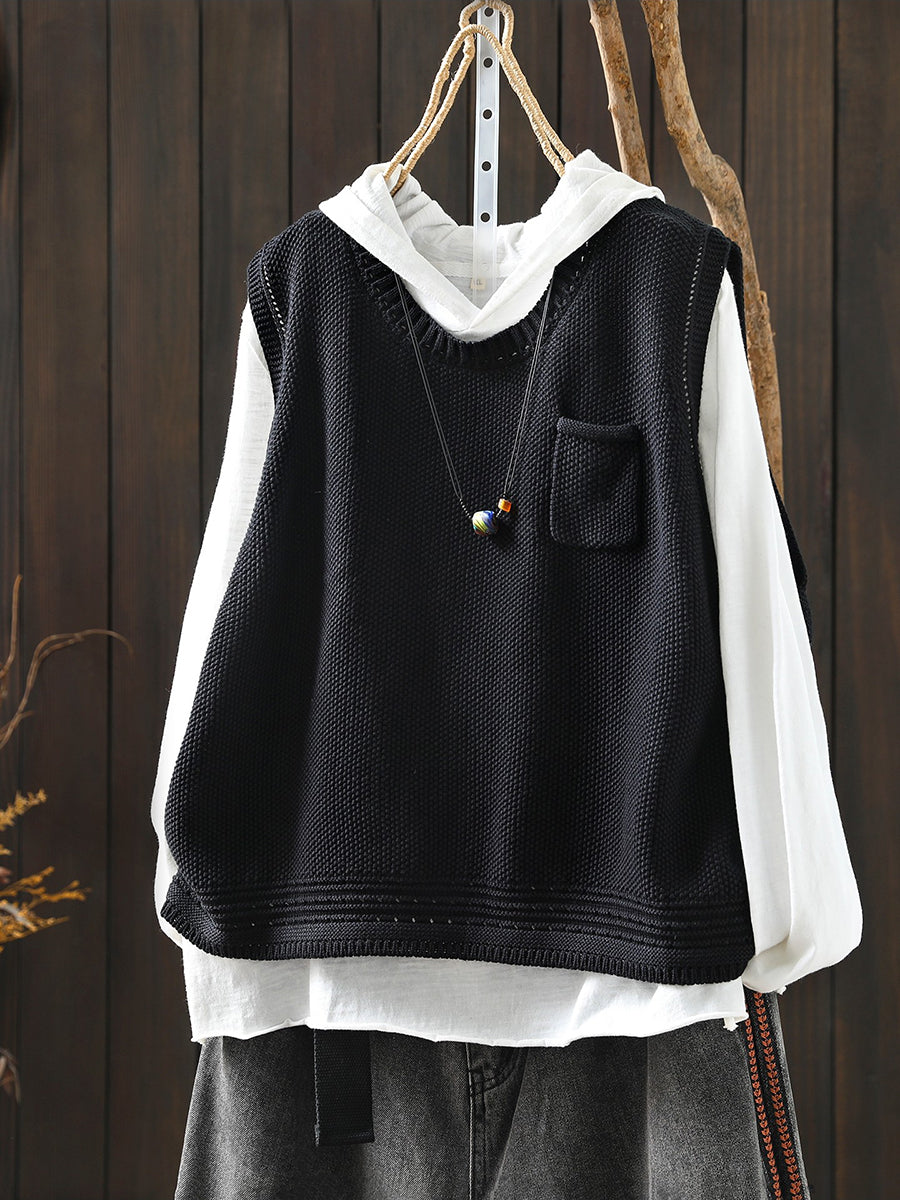 Women Spring Artsy O-Neck Pure Color Knitted Vest