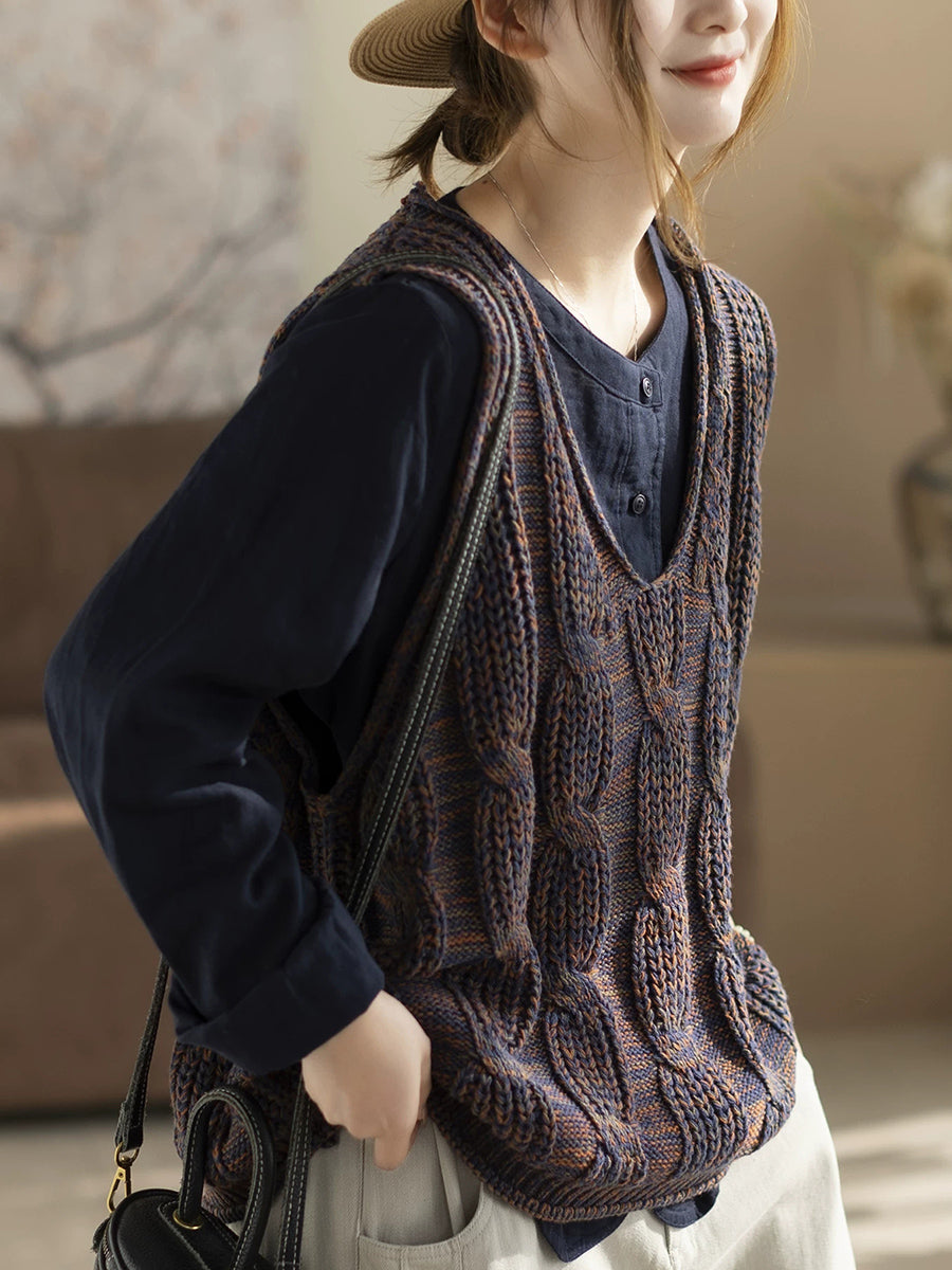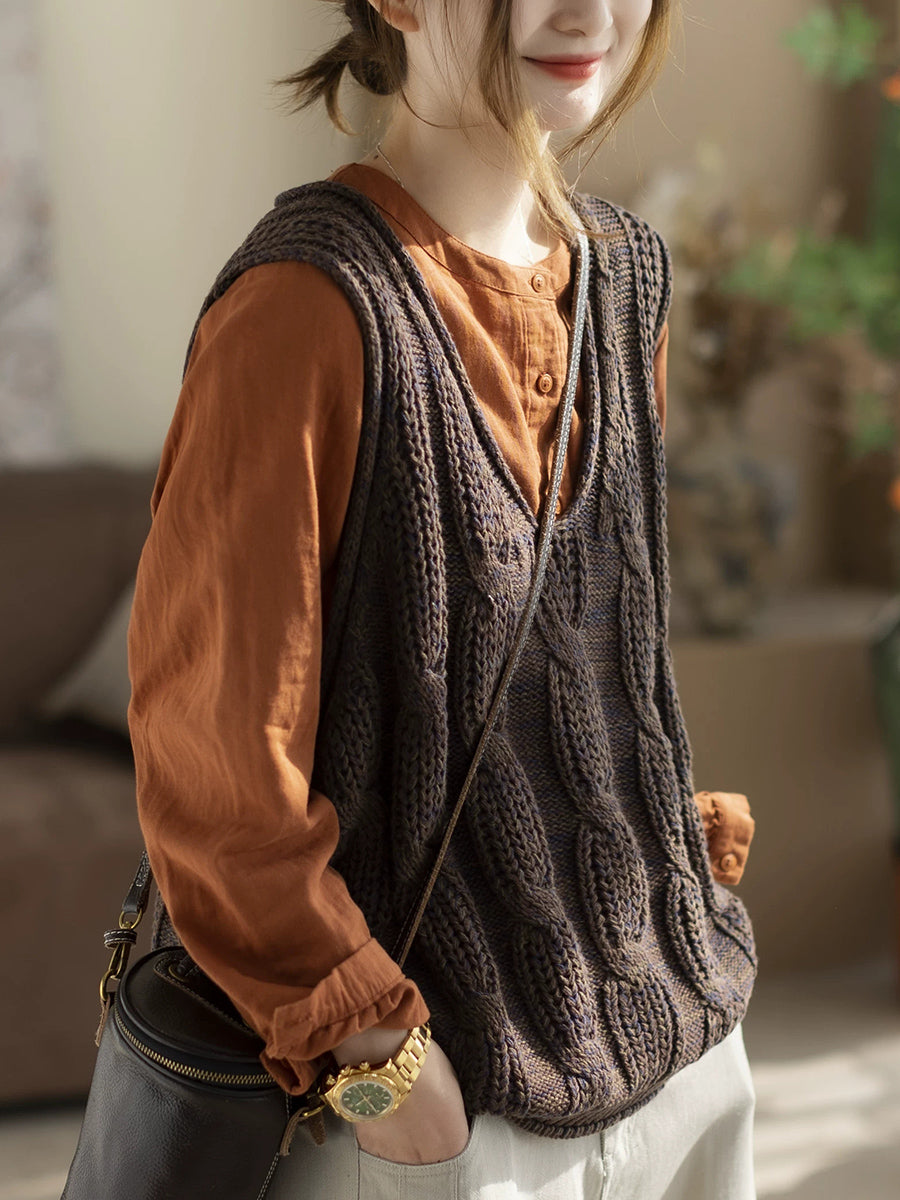 Women Spring Artsy V-Neck Cable Knitted Vest