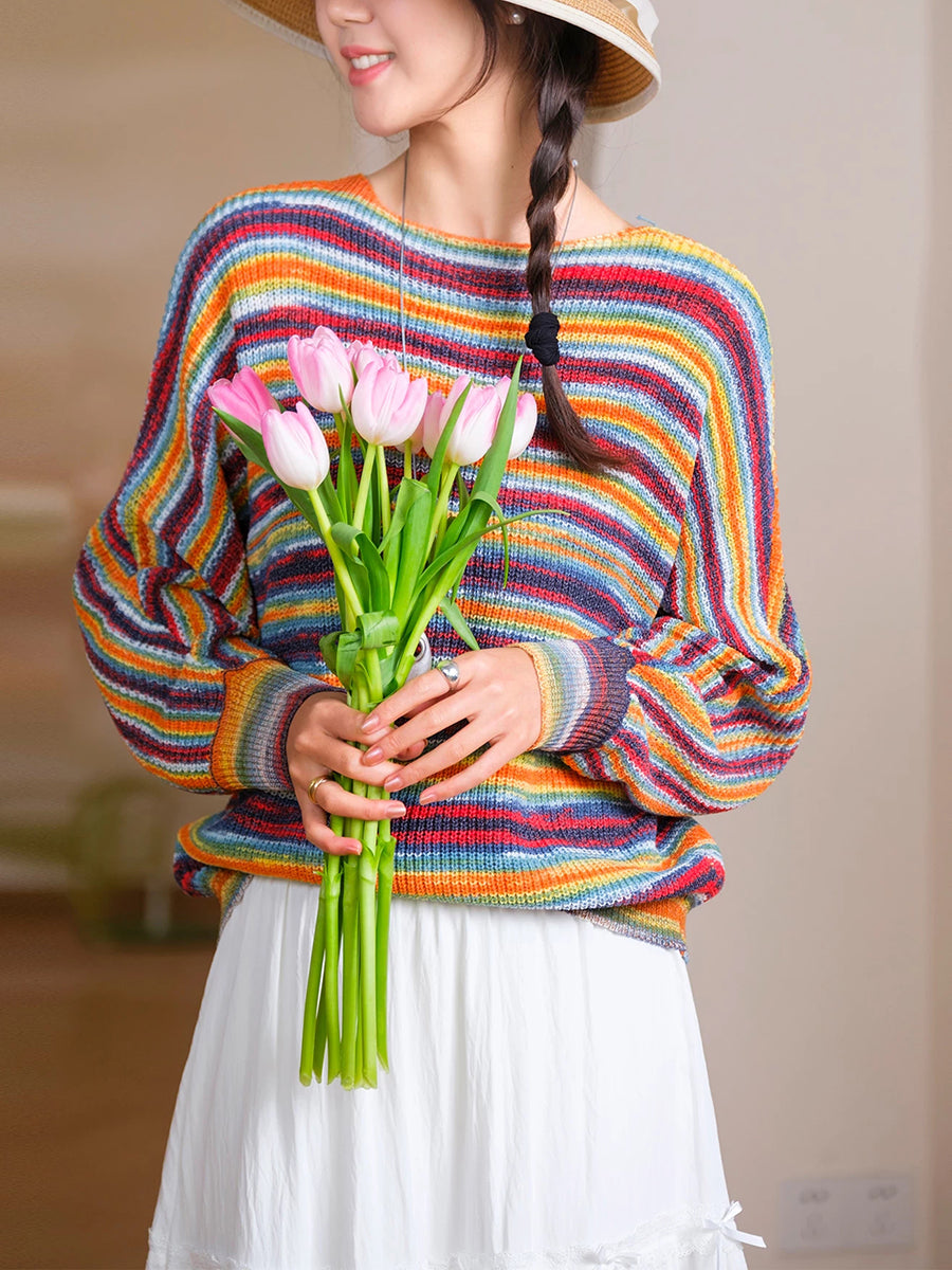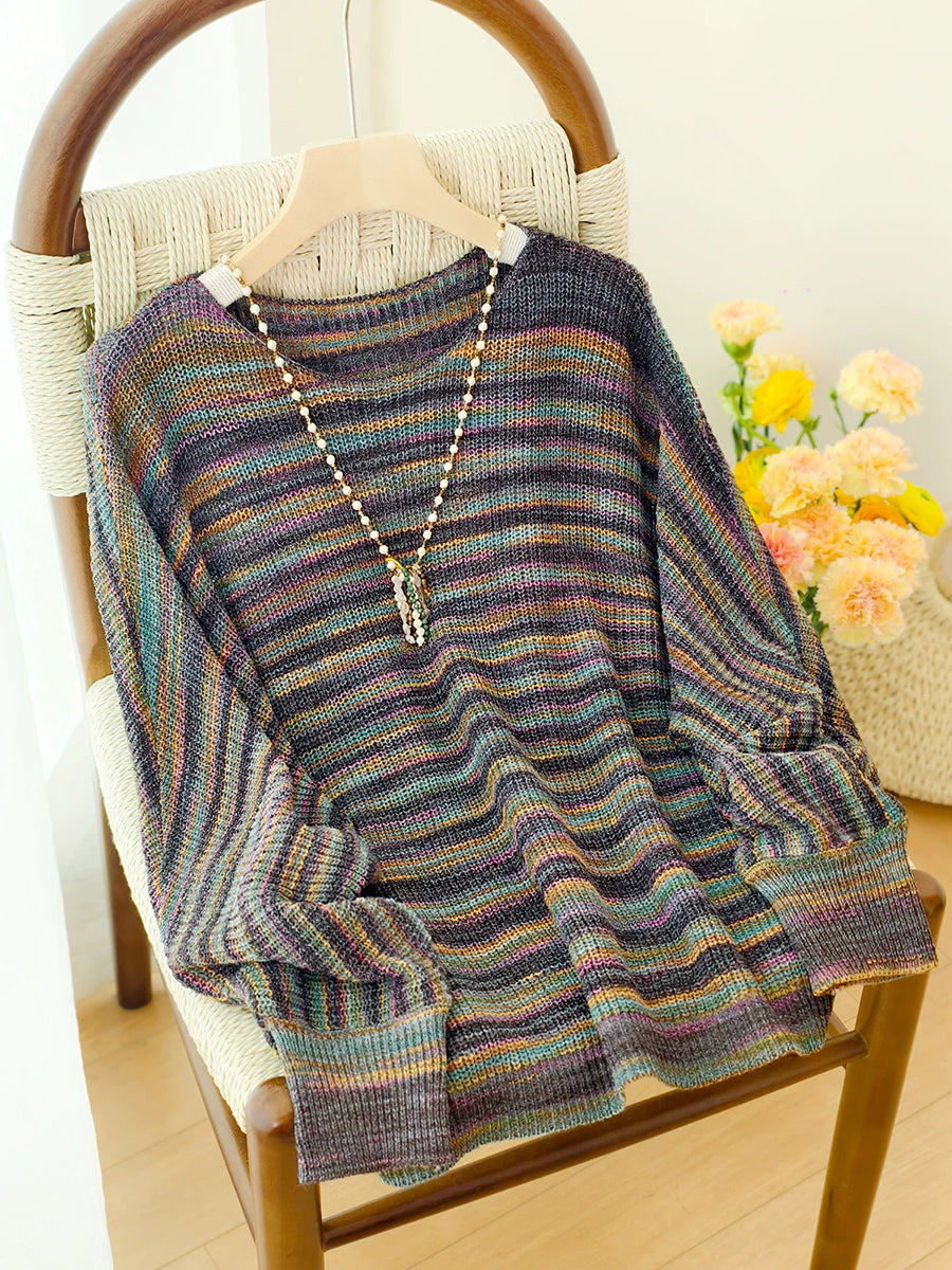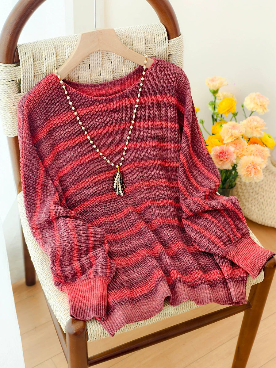 Women Spring Casual Stripe Knitted O-Neck Blouse