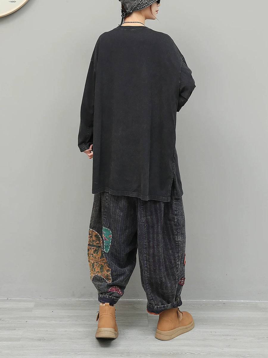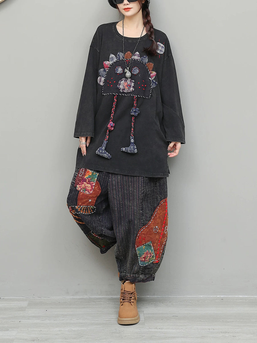 Women Spring Ethnic Patchwork O-Neck Suits