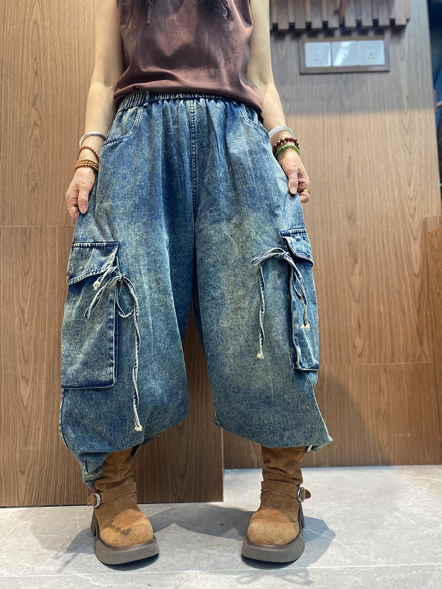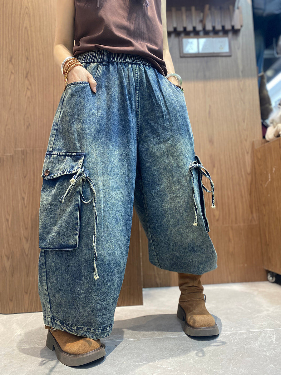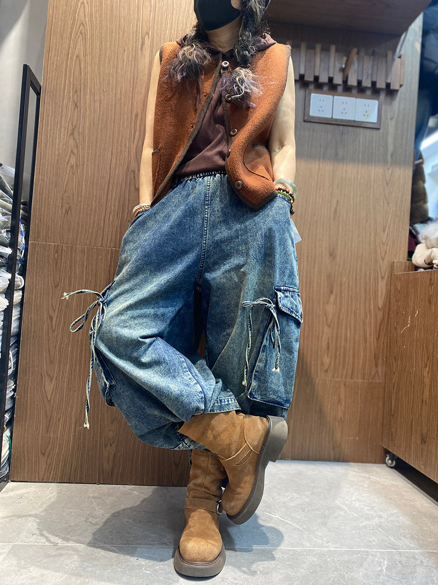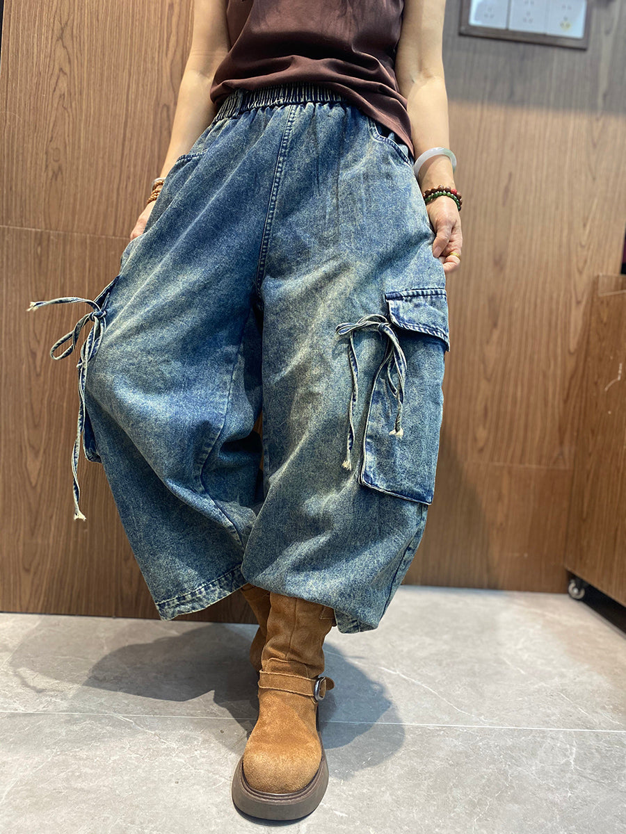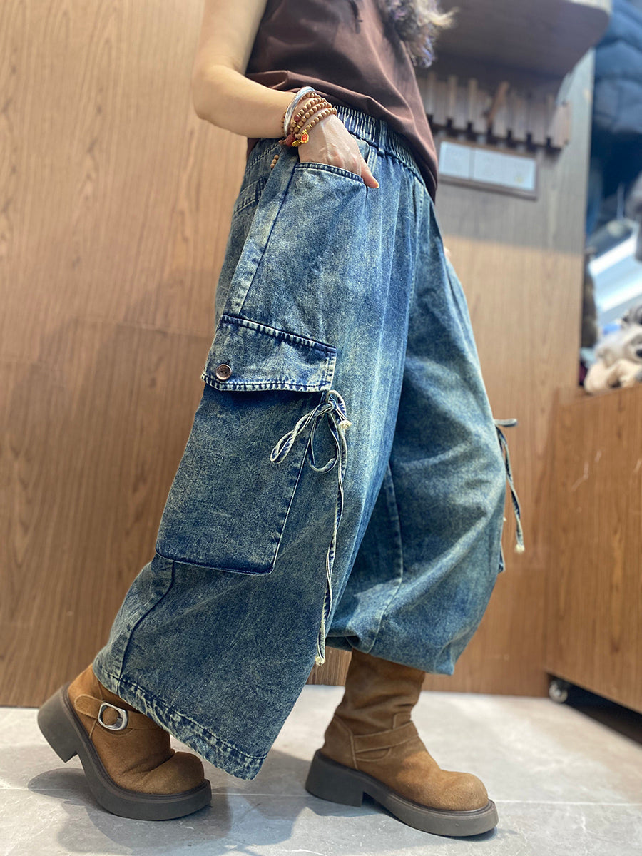 Women Spring Vintage Denim Wide-leg Pants