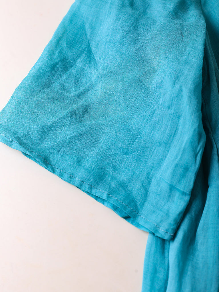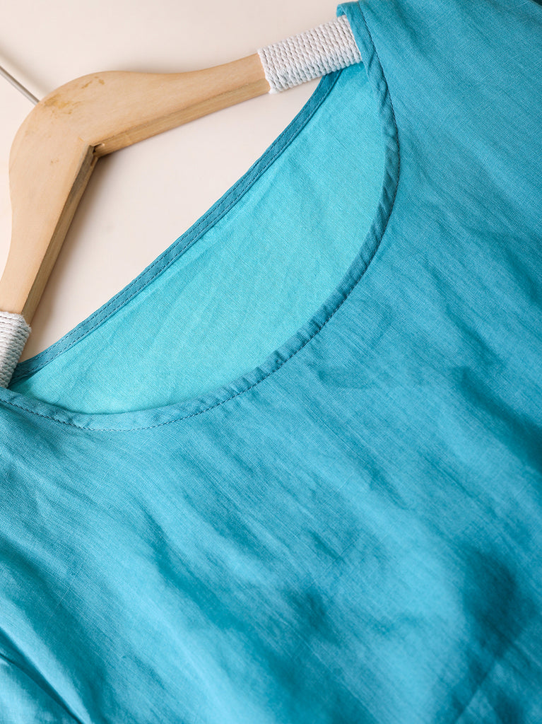 Plus Size Women Summer Artsy Pure Color O-Neck 100%Ramie Dress
