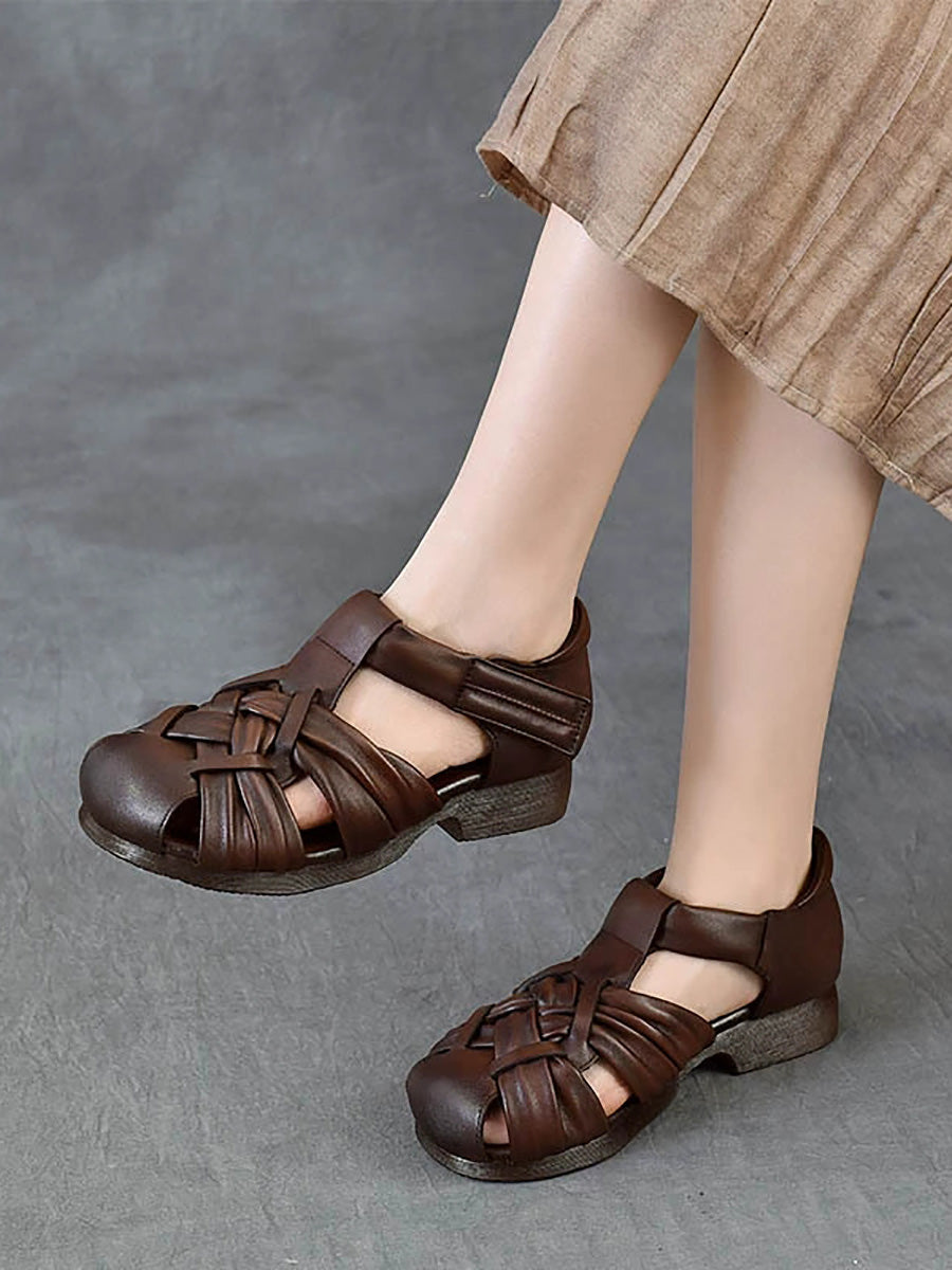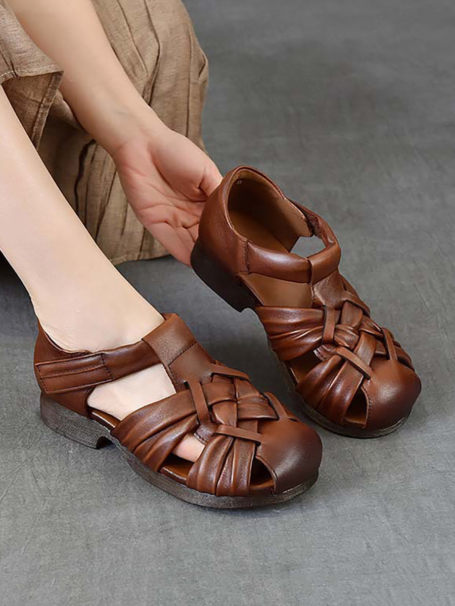 Women Summer Genuine Leather Weave Sandals