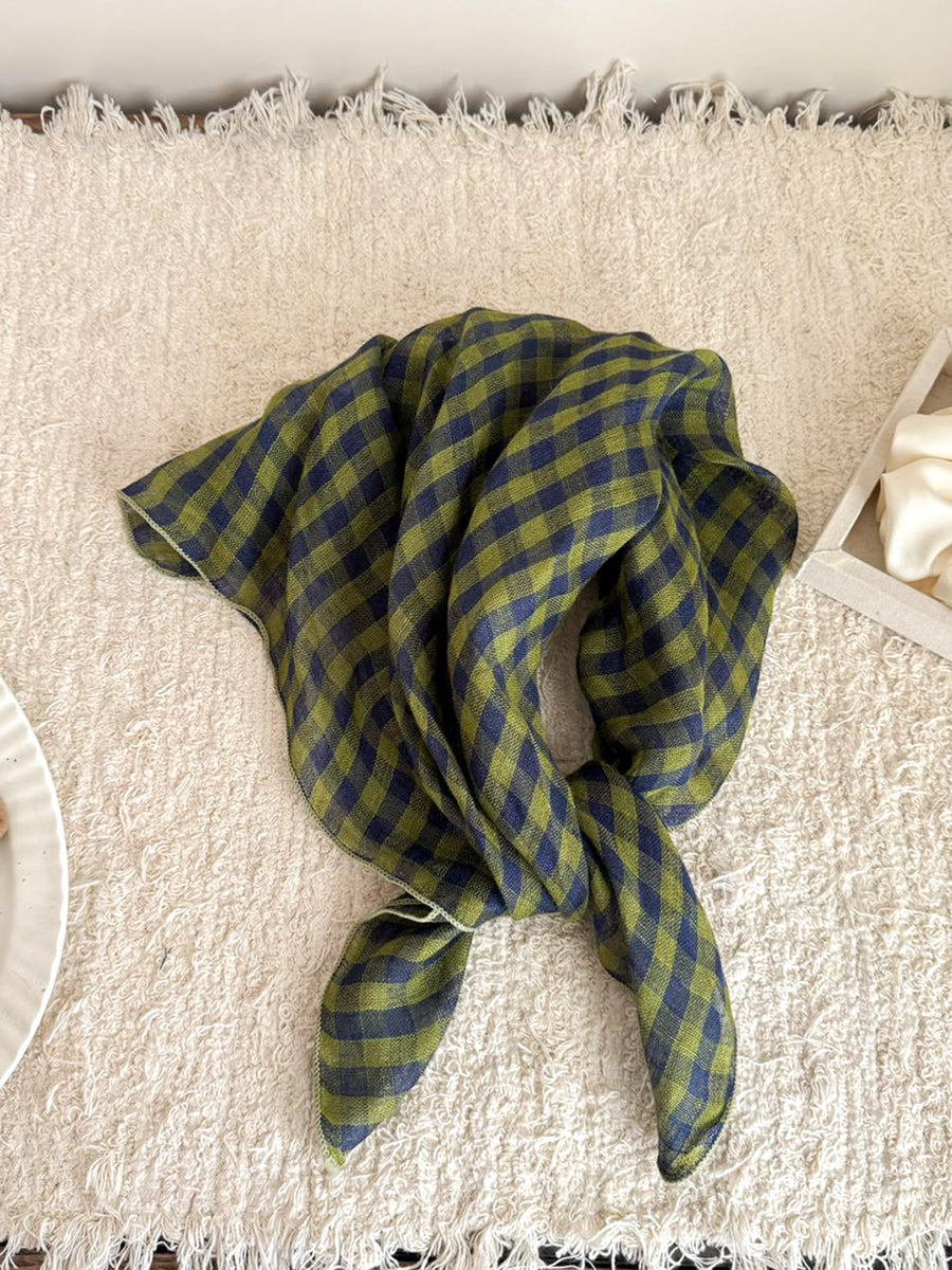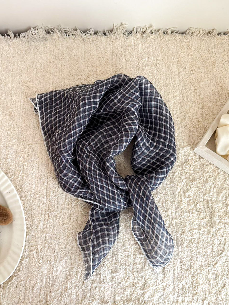 Women Summer Vintage Plaid Stripe Triangle Scarf