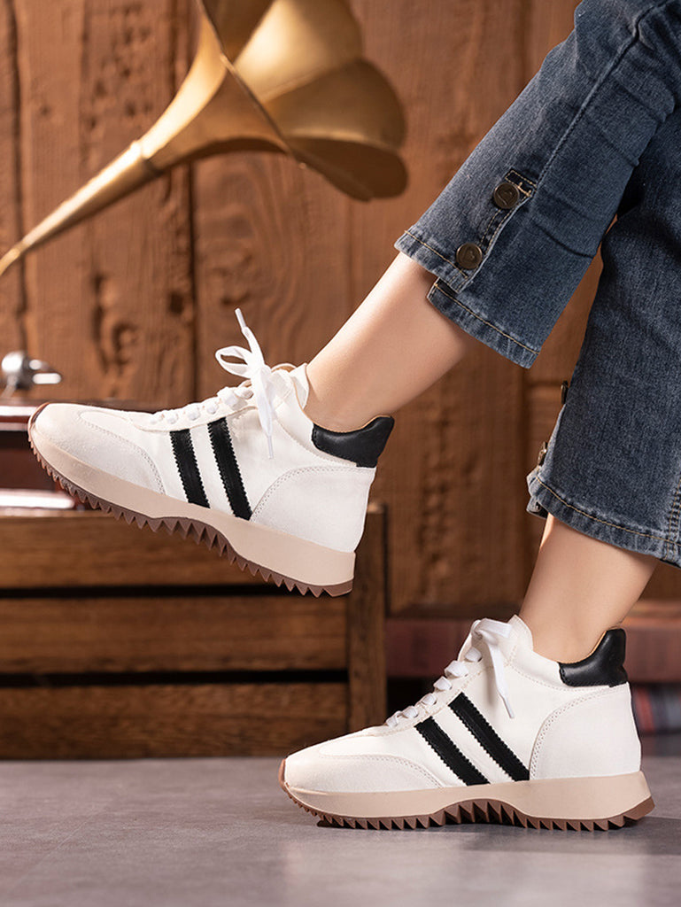 Women Vintage Genuine Leather Spliced Platform Shoes
