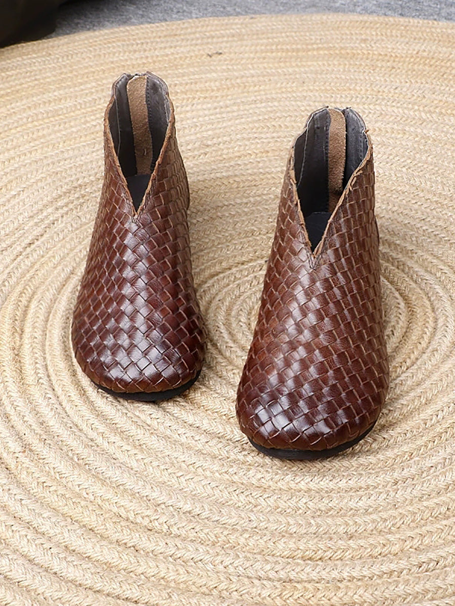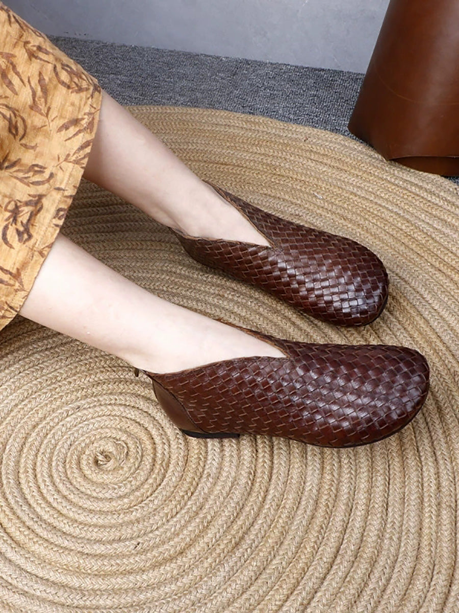 Women Vintage Genuine Leather Weave Flat Shoes