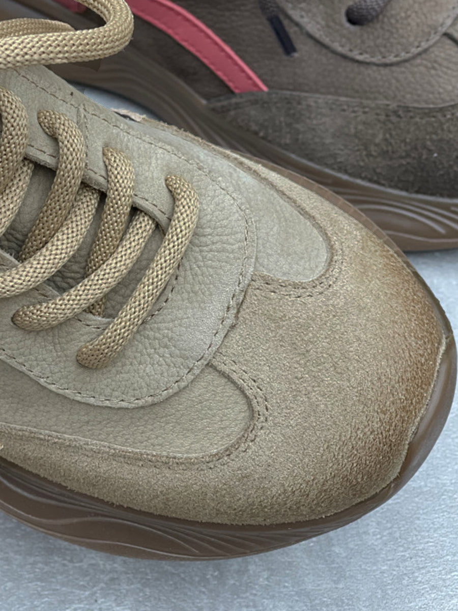 Women Vintage Leather Spliced Platform Shoes