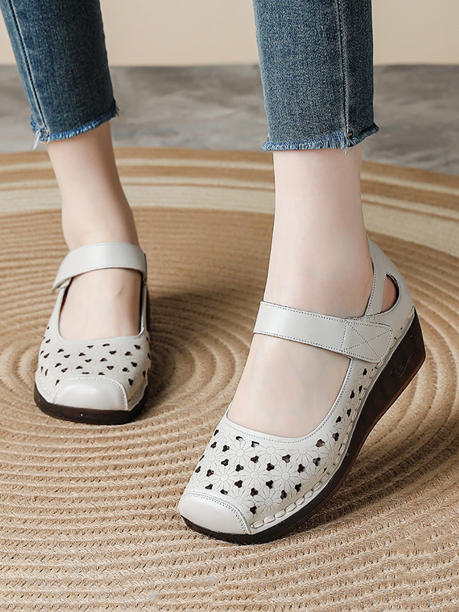 Women Vintage Summer Soft Leather Platform Sandals